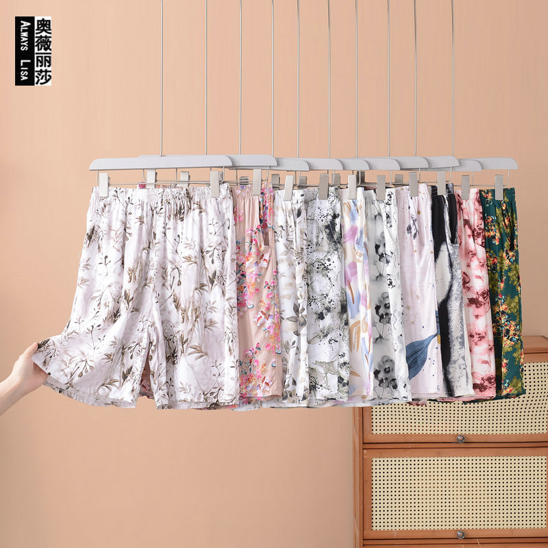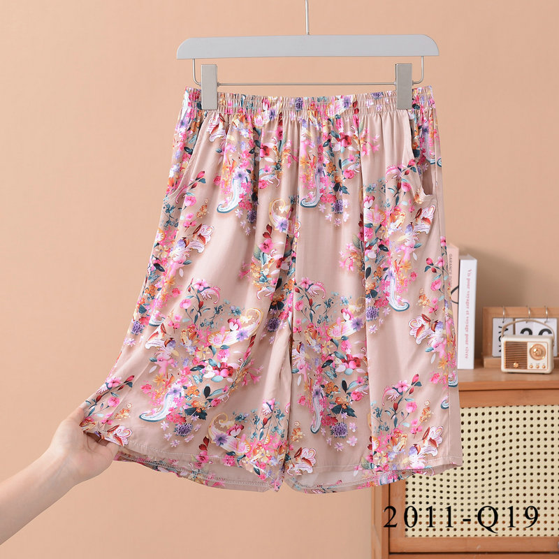 Женские свободные хлопчатобумажные шелковые шорты с коротким цветочным узлом повседневные тонкие висясиные пляжные брюки с уличным принтом