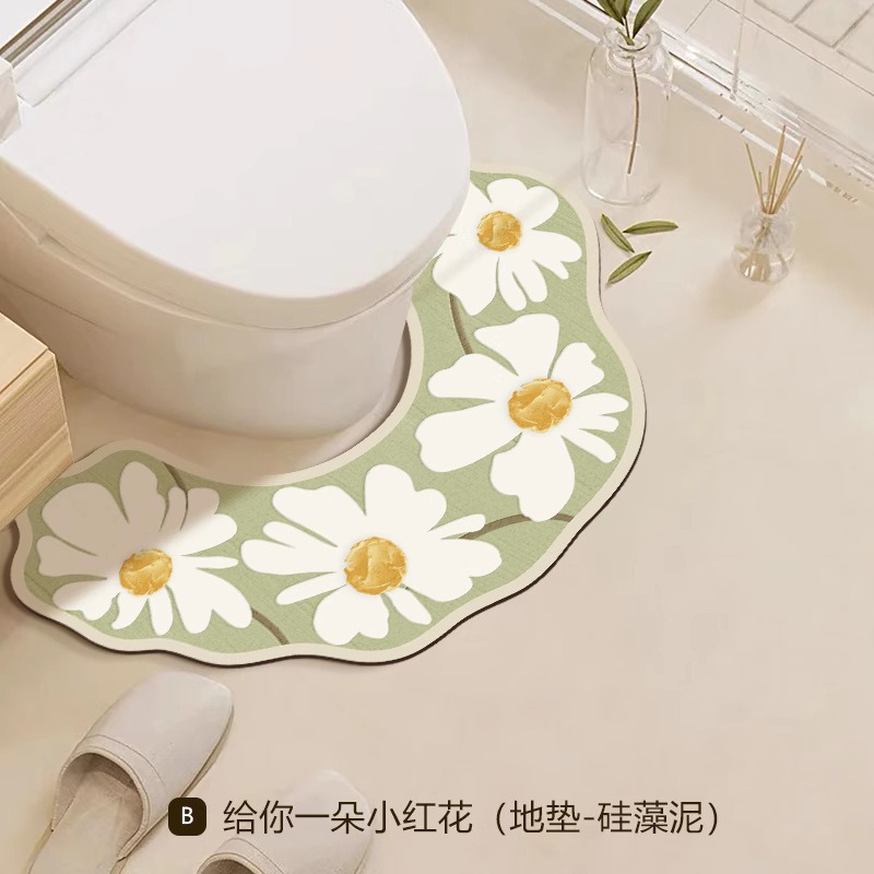 Коврик для ванной комнаты U-образной формы, влагопоглощающий, водоотталкивающий, из диатомитовой земли, нескользящий, прочный и легкий в уходе, специальной формы, для домашнего использования.