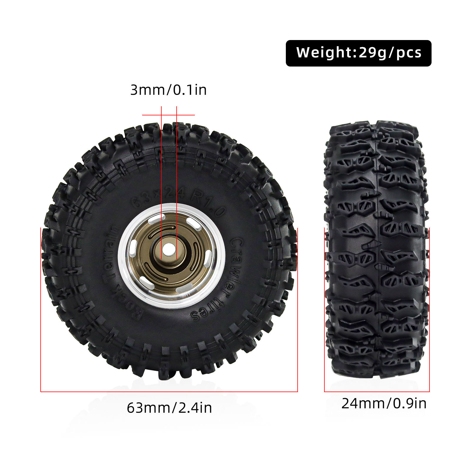 Радиоуправляемый автомобиль для восхождения, 1.0inch циклонных колес из алюминиевого сплава + шины jc SCX24 FMS24 TRX4M-W190