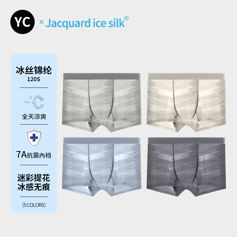 Главная страница > Новое ультратонкое бесшовное нейлоновое нижнее белье из ледяного шелка, мужские камуфляжные жаккардовые трусы-боксеры 7A, быстросохнущее мужское нижнее белье с антибактериальной промежностью