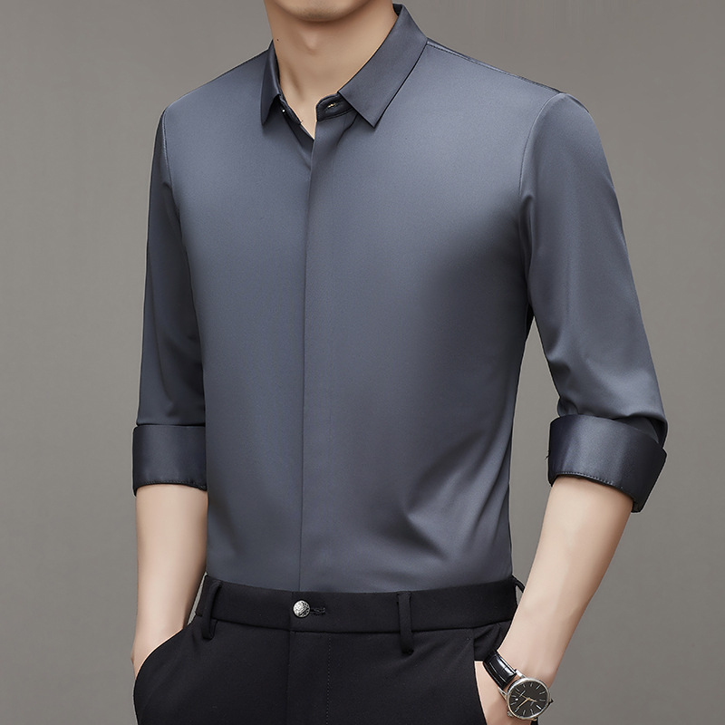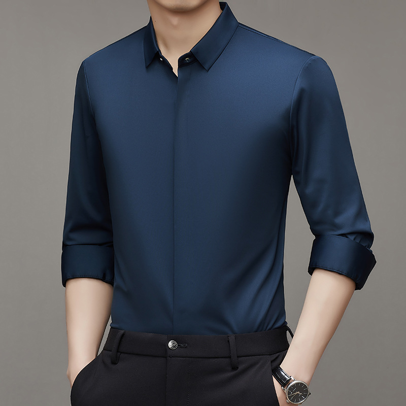 Главная страница > Высококачественная безбуквная пряжка белая рубашка мужская рубашка с длинными рукавами весной и осенью бизнес против морщин без горячей черной рабочей одежды мужская рубашка