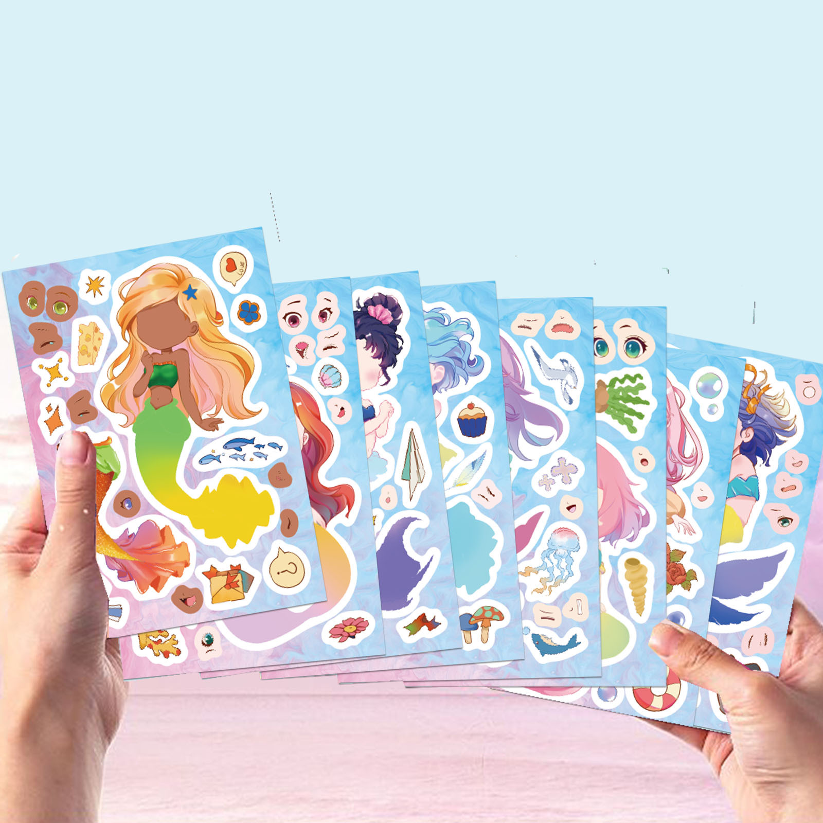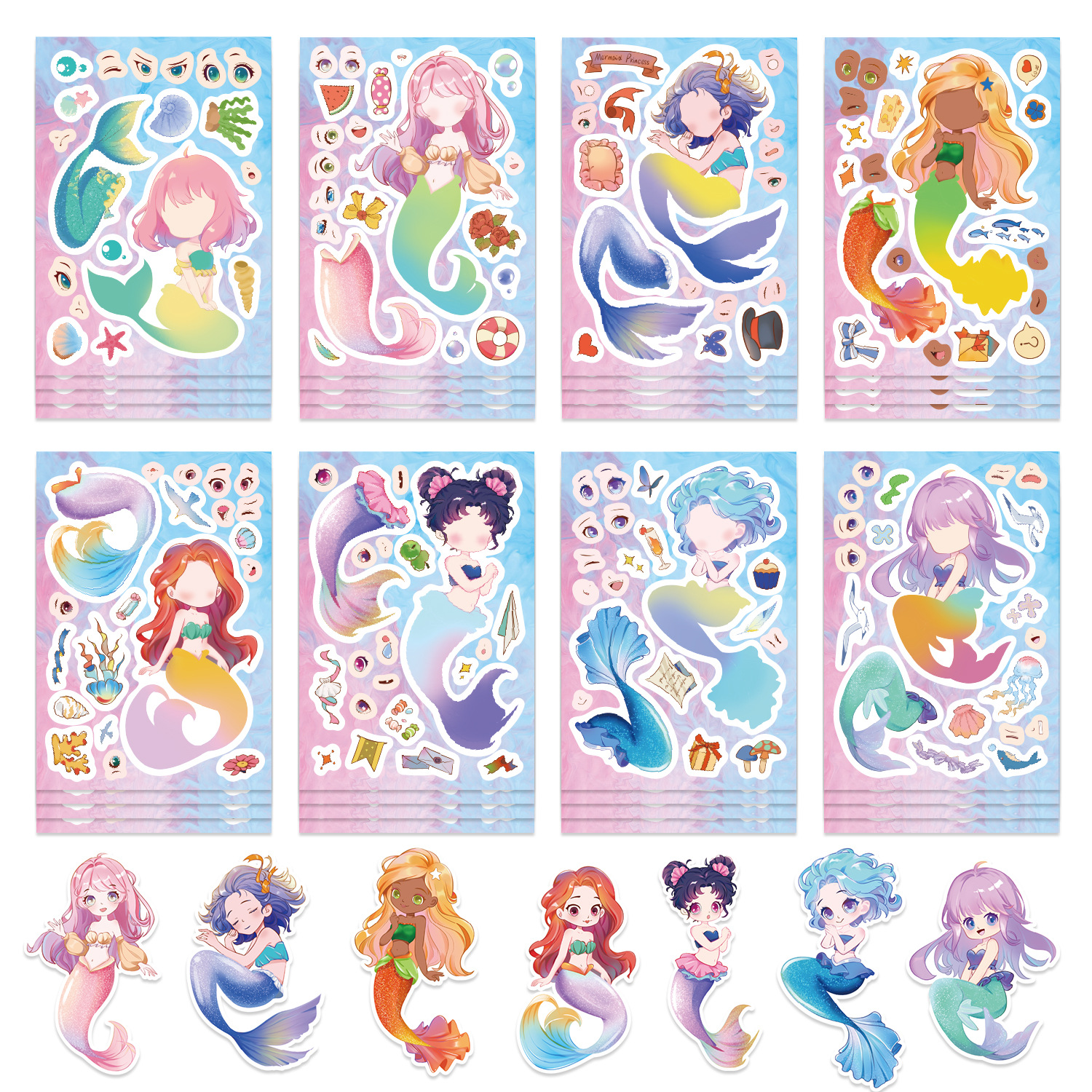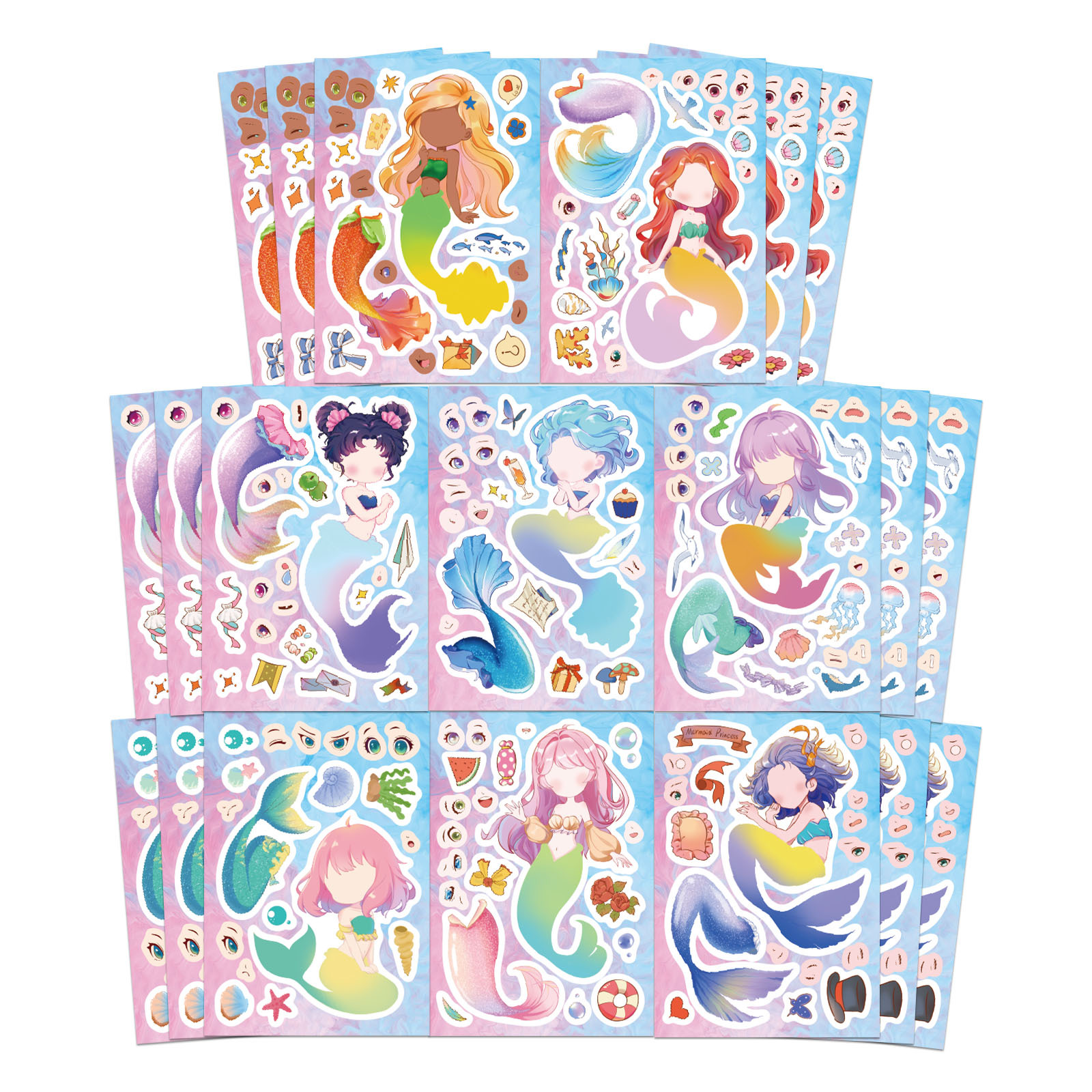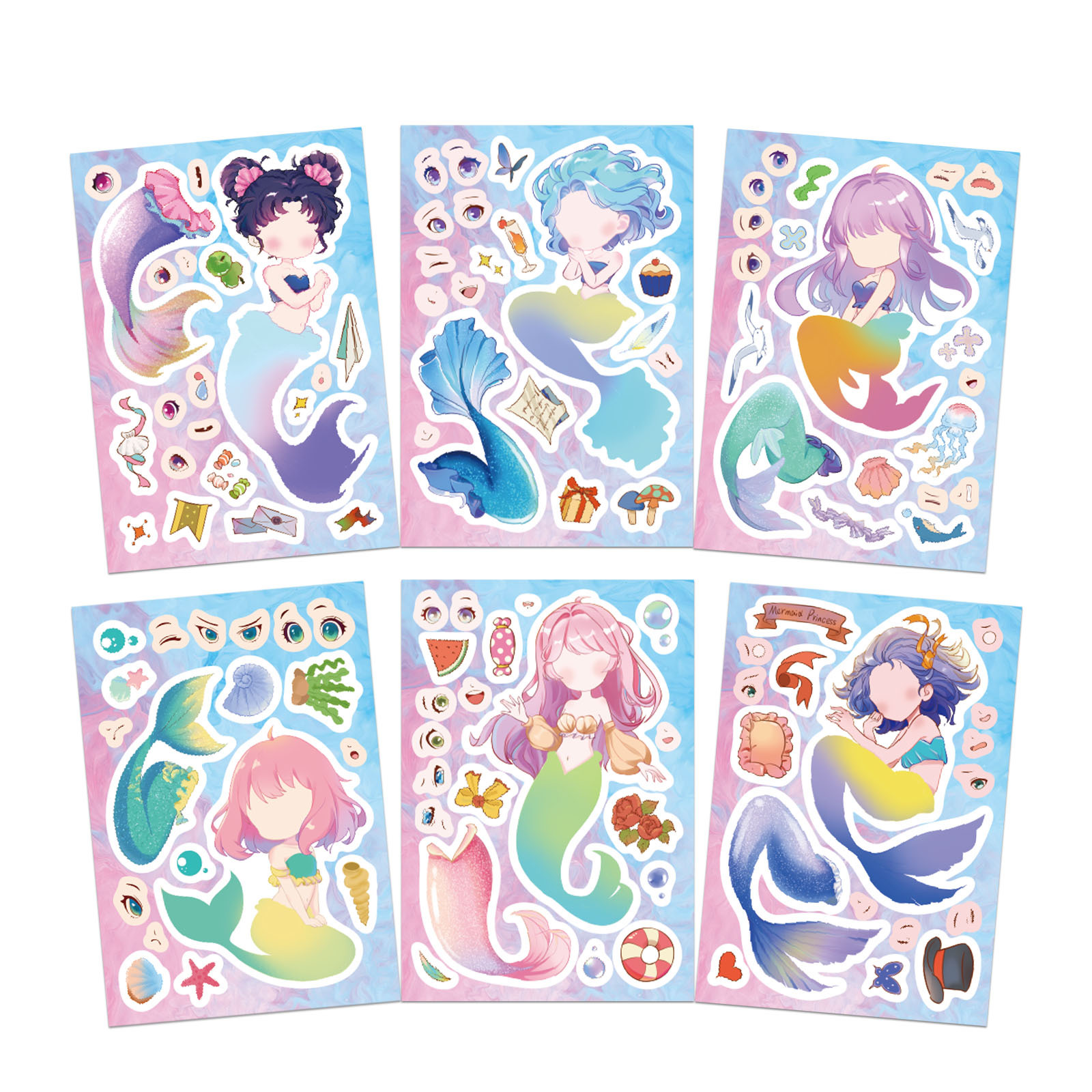 Трансграничная горячая распродажа милая русалка принцесса меняет лицо наклейки мультфильм интерактивная головоломка diy коллаж водонепроницаемый