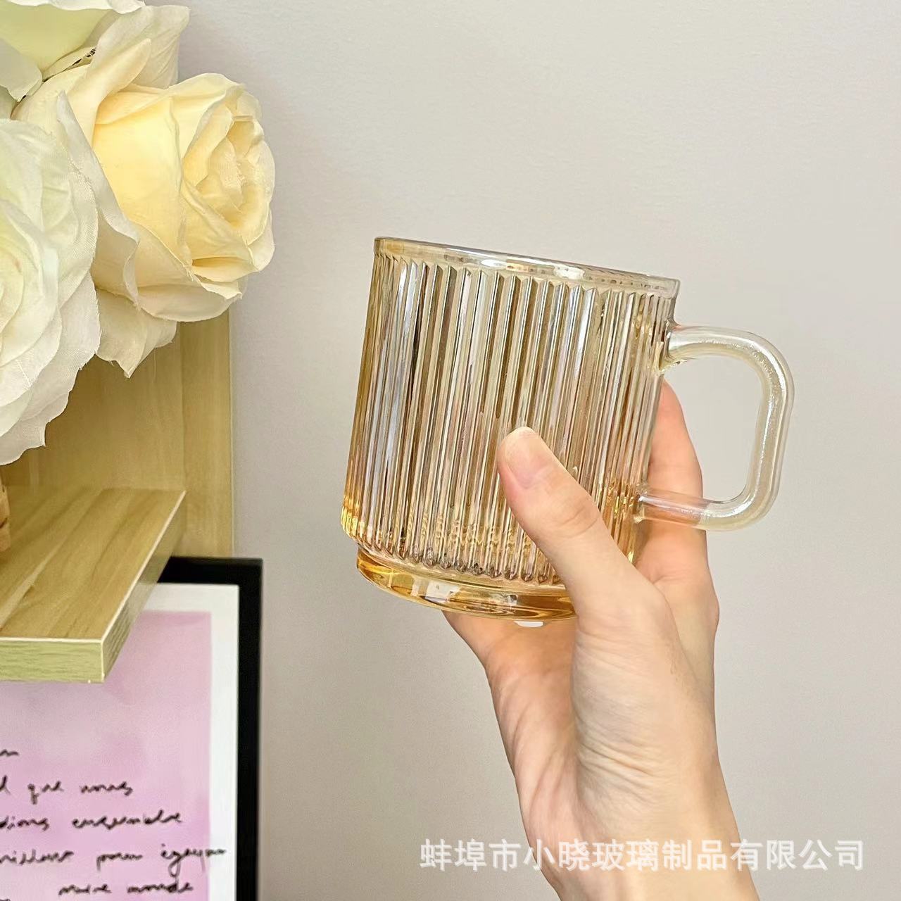 Ретро стекло в американском стиле с ручкой Офисная кофейная чашка Янтарная Вертикальная ручка с рисунком Высокая Цветовая ценность Подарочная сетка для домашнего сопровождения