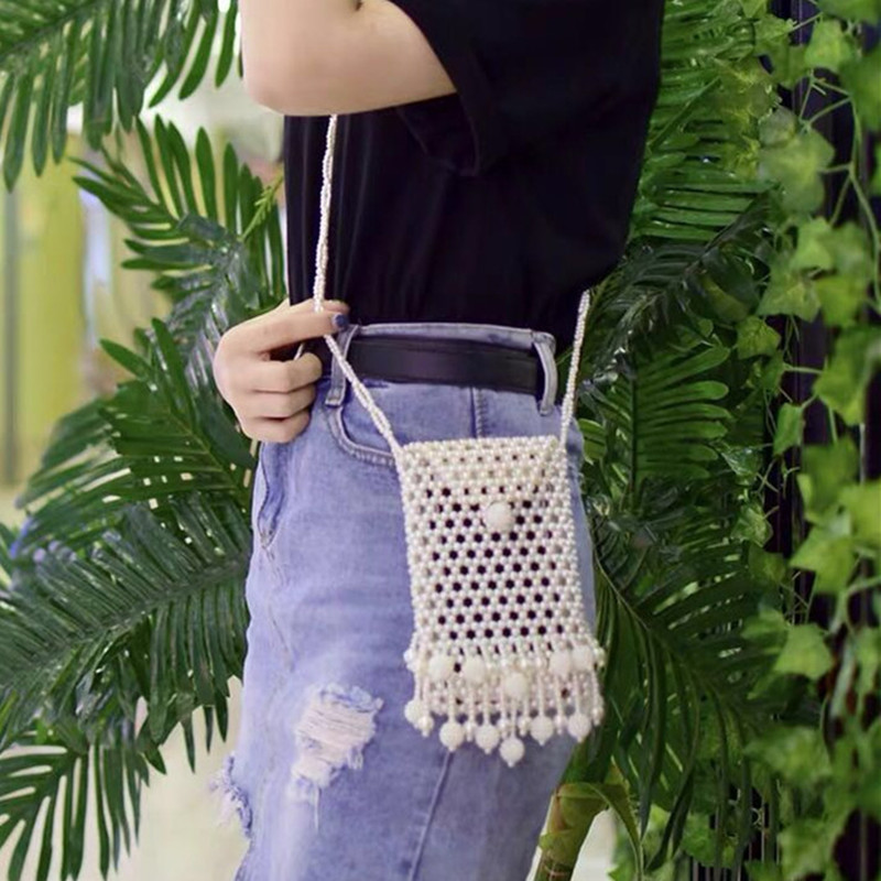 Главная страница > Готовый кошелек для монет с кисточками из бисера, сумка через плечо, тканая женская летняя сумка с бисером, популярная сумка для мобильного телефона с искусственным жемчугом