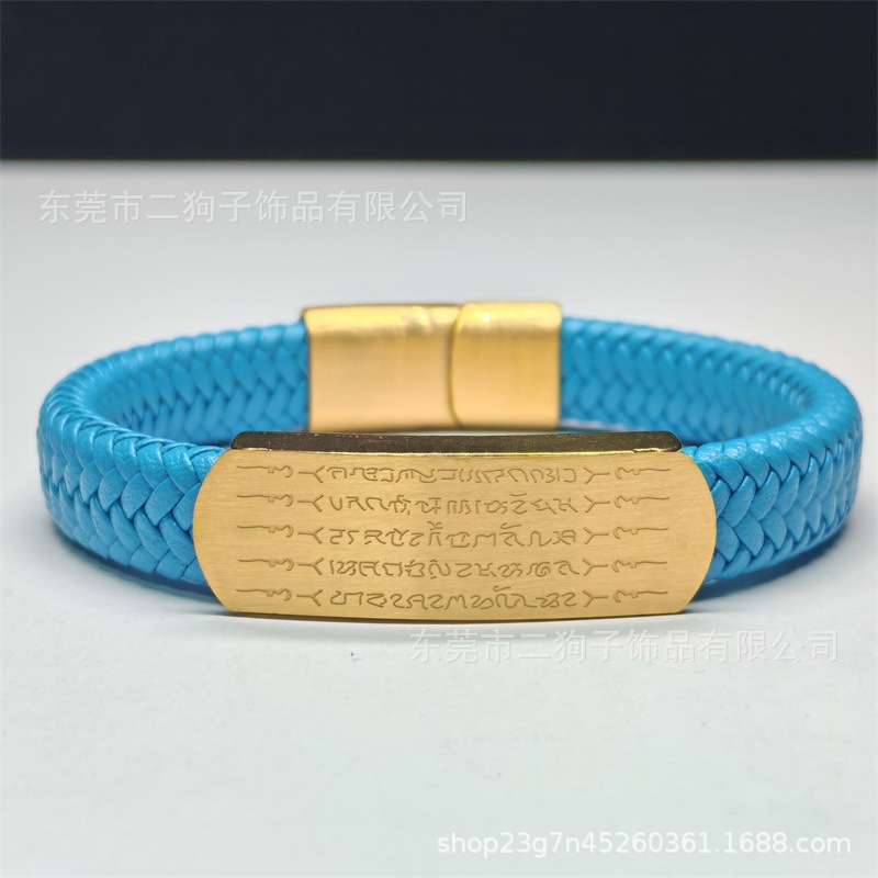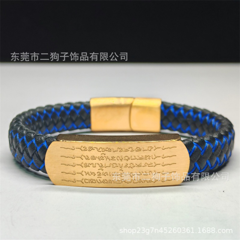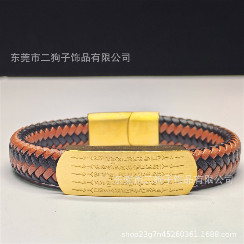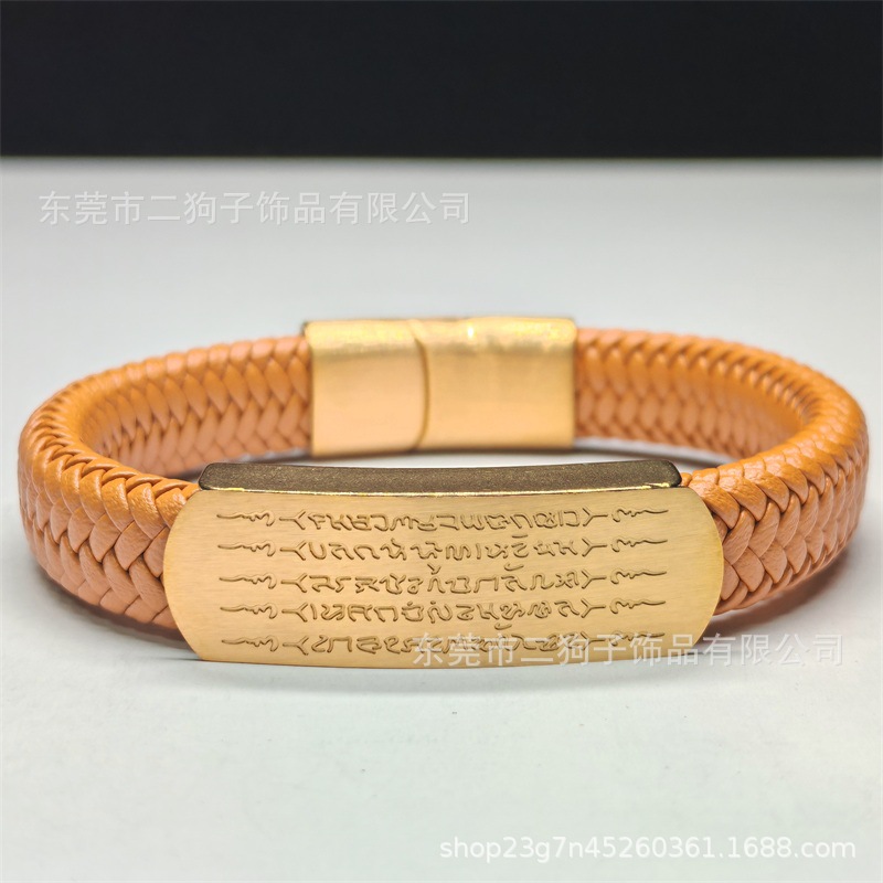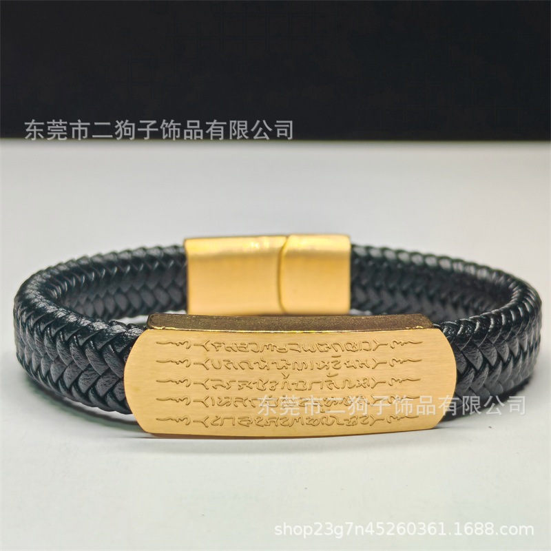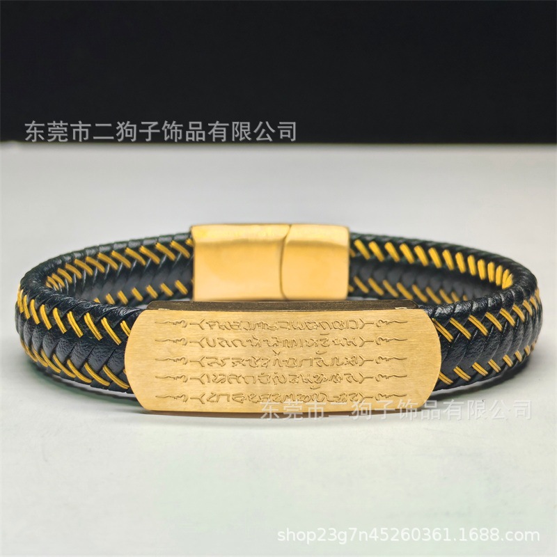 Главная страница > Тайский браслет с пятью сутрами для мужчин и женщин, универсальный браслет ручной работы из плетеной кожи в цвете песочного золота и черного цвета, модный.