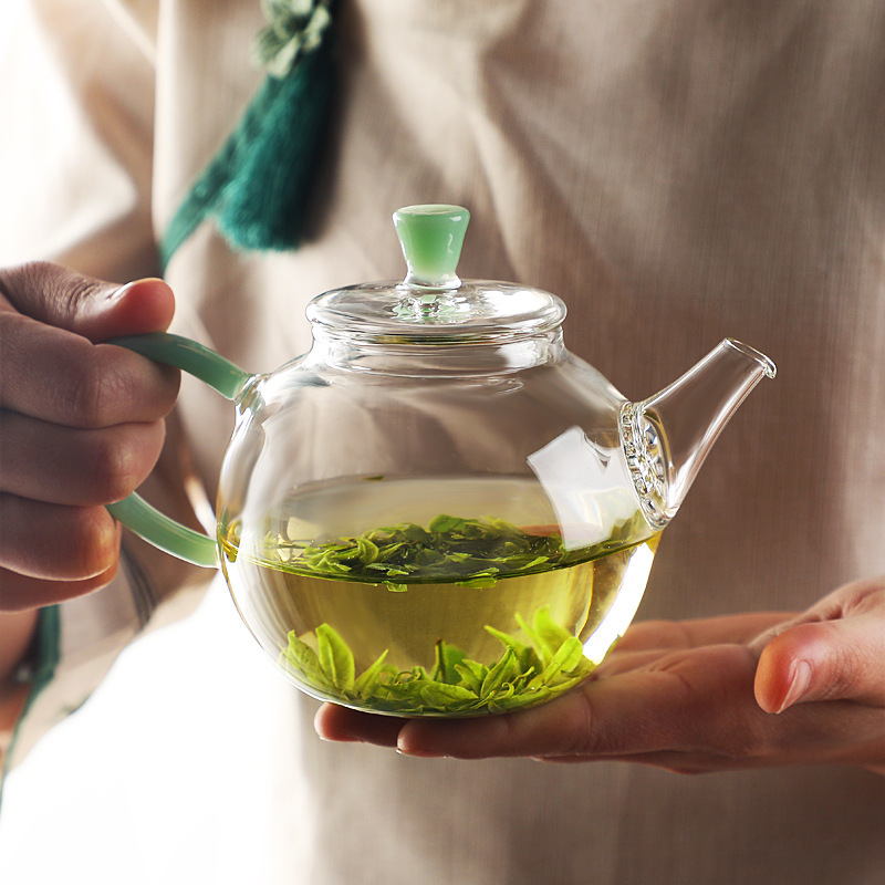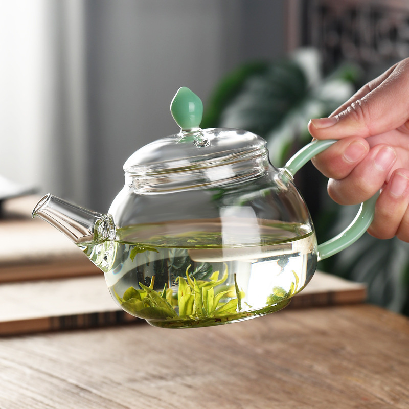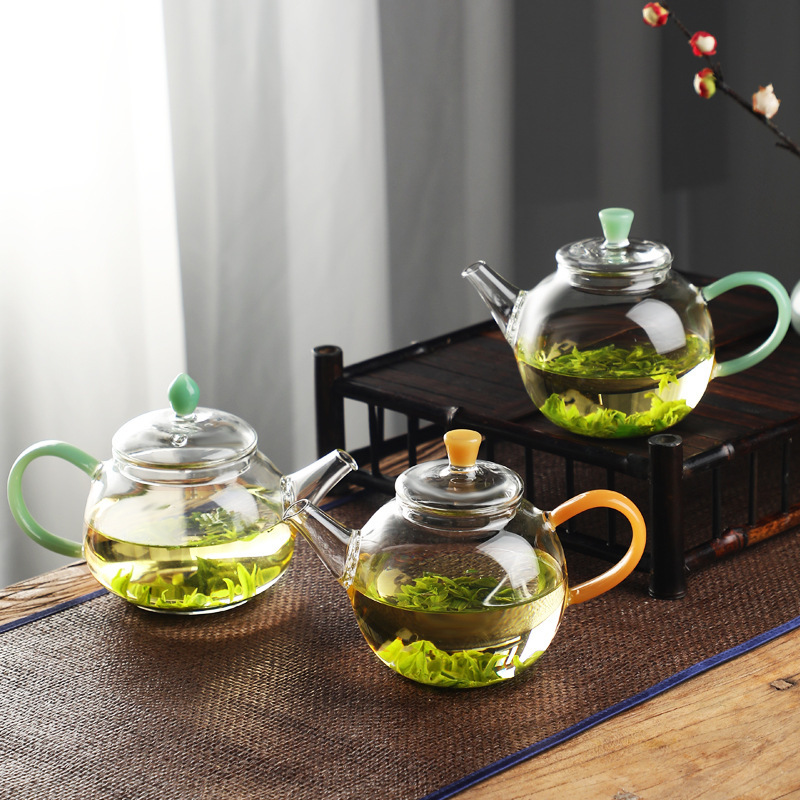 Главная страница > Прозрачное стекло поставляется с фильтром цветочный чай, вареный чайник кунг-фу цветной ручки маленький мини-чайник минималистский чайник