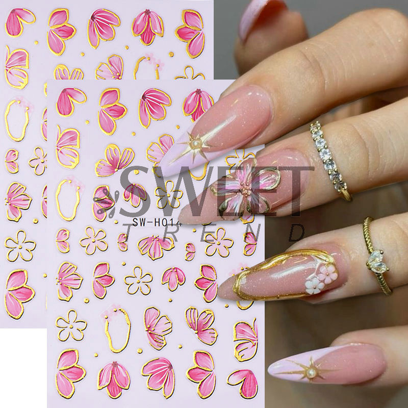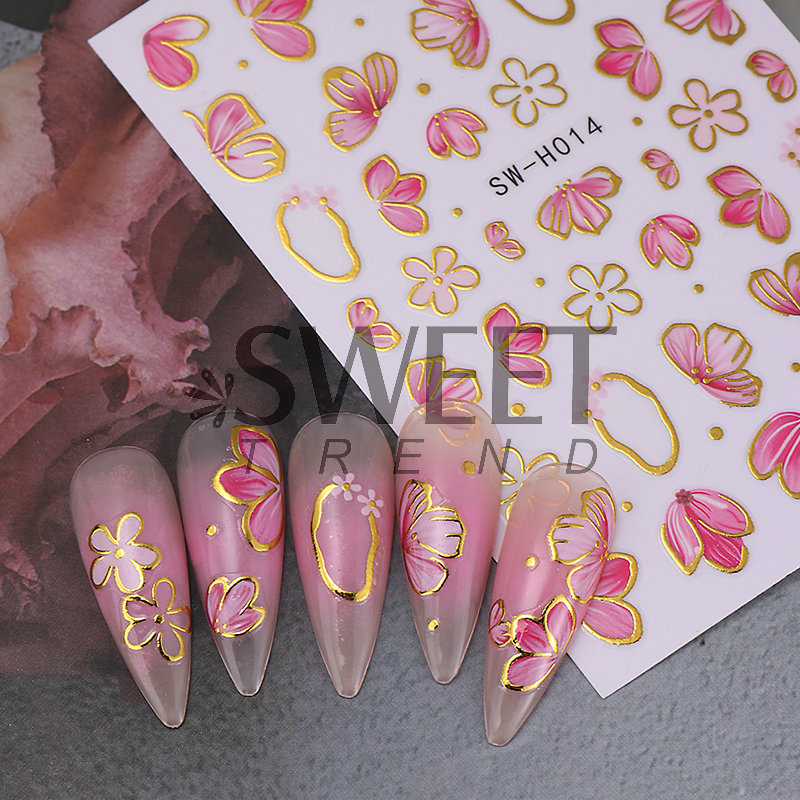 Трансграничные новые цветочные наклейки весенняя сеть красный пномпень цветы розовая вишня горячая жгут наклейки для ногтей