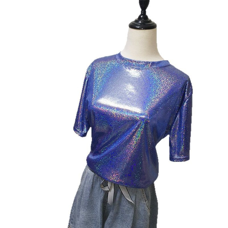 Новая летняя одежда 2020 года, новые шорты BF, яркая шелковая футболка, женская блузка с коротким рукавом средней длины, блестящая футболка-юбка