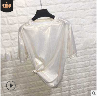 Главная страница > Новая летняя одежда 2020 года, новые шорты BF, яркая шелковая футболка, женская блузка с коротким рукавом средней длины, блестящая футболка-юбка