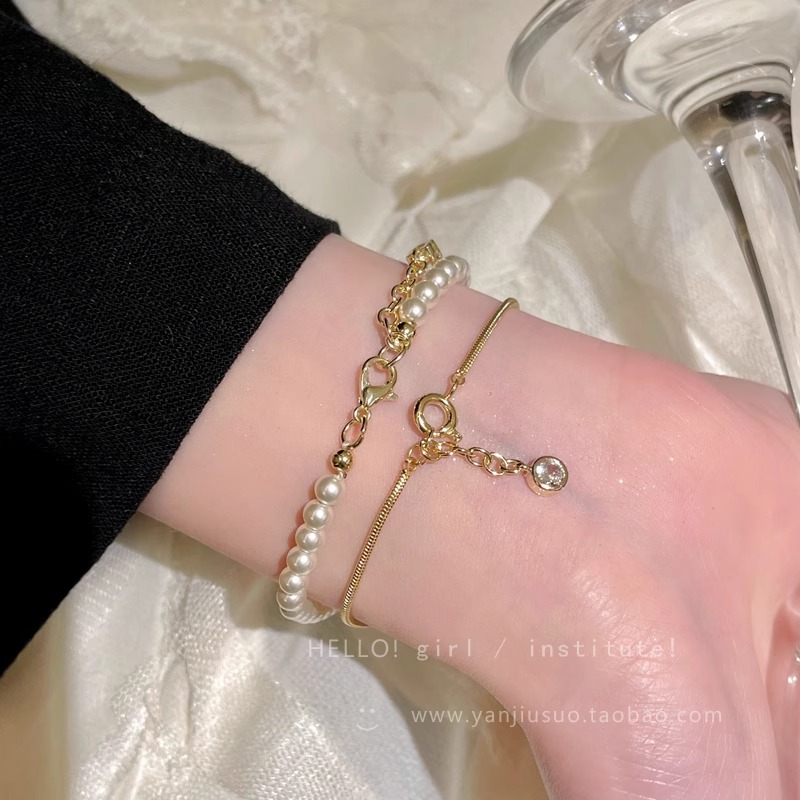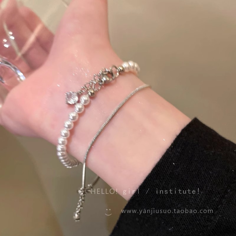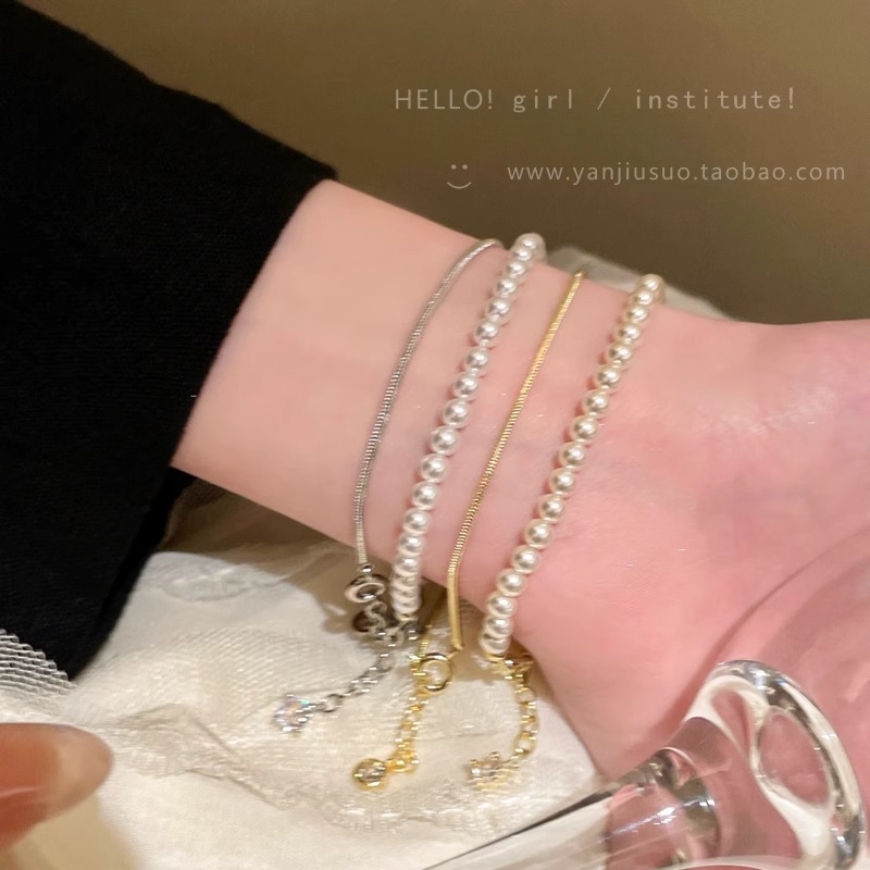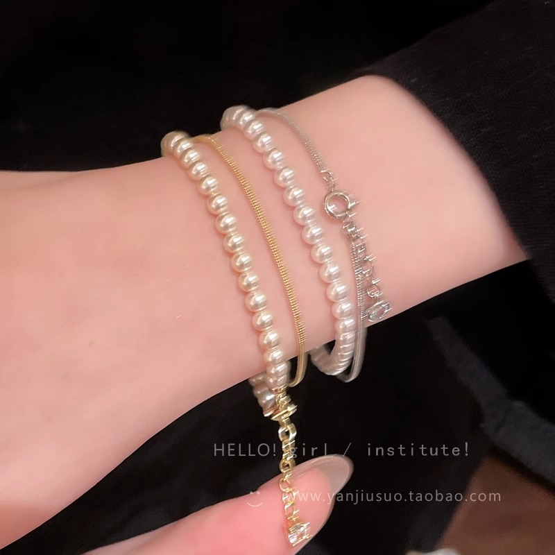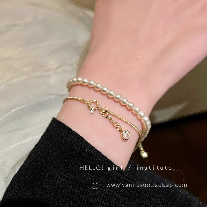 Главная страница > Shi Home Cream Pearl Браслет женский 2025 новый взрывной легкий роскошный нишот изысканный двухслойный складной браслет со змеиной косточкой браслет
