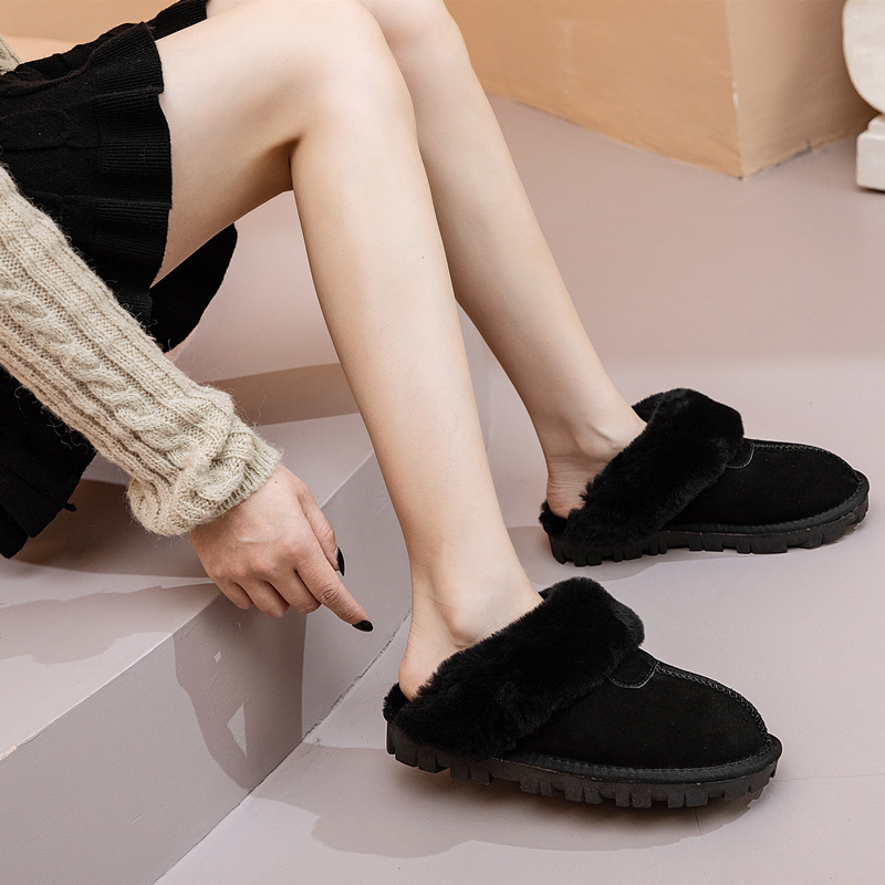 Осень и зима Qiansing Yi плоские шерстяные шлепанцы XLLAUG женские меховые