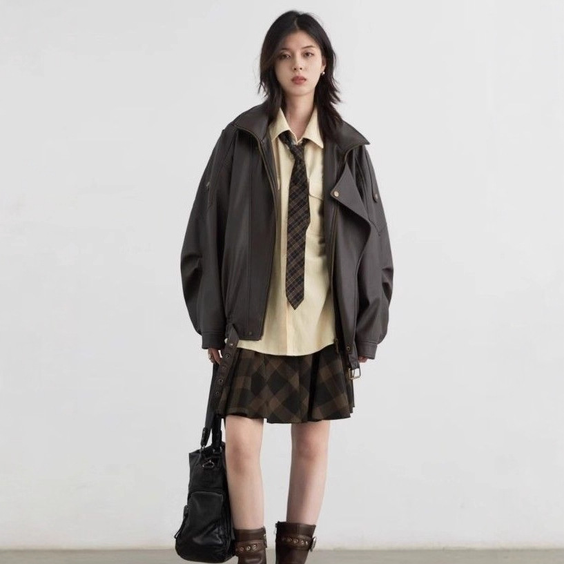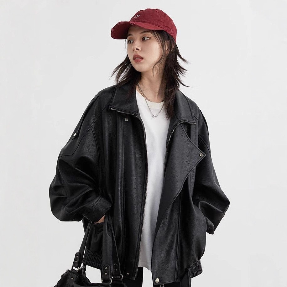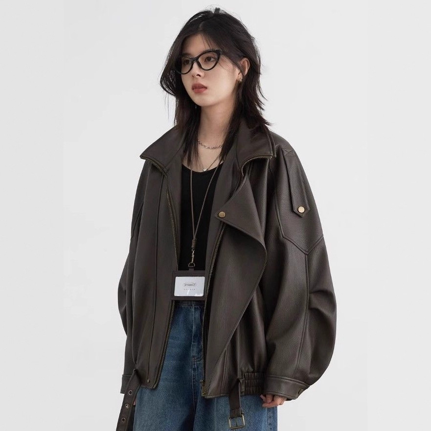 Главная страница > Модная ретро-кожаная куртка с воротником-стойкой для женщин, новая мотоциклетная куртка из PU на весну 2025 года