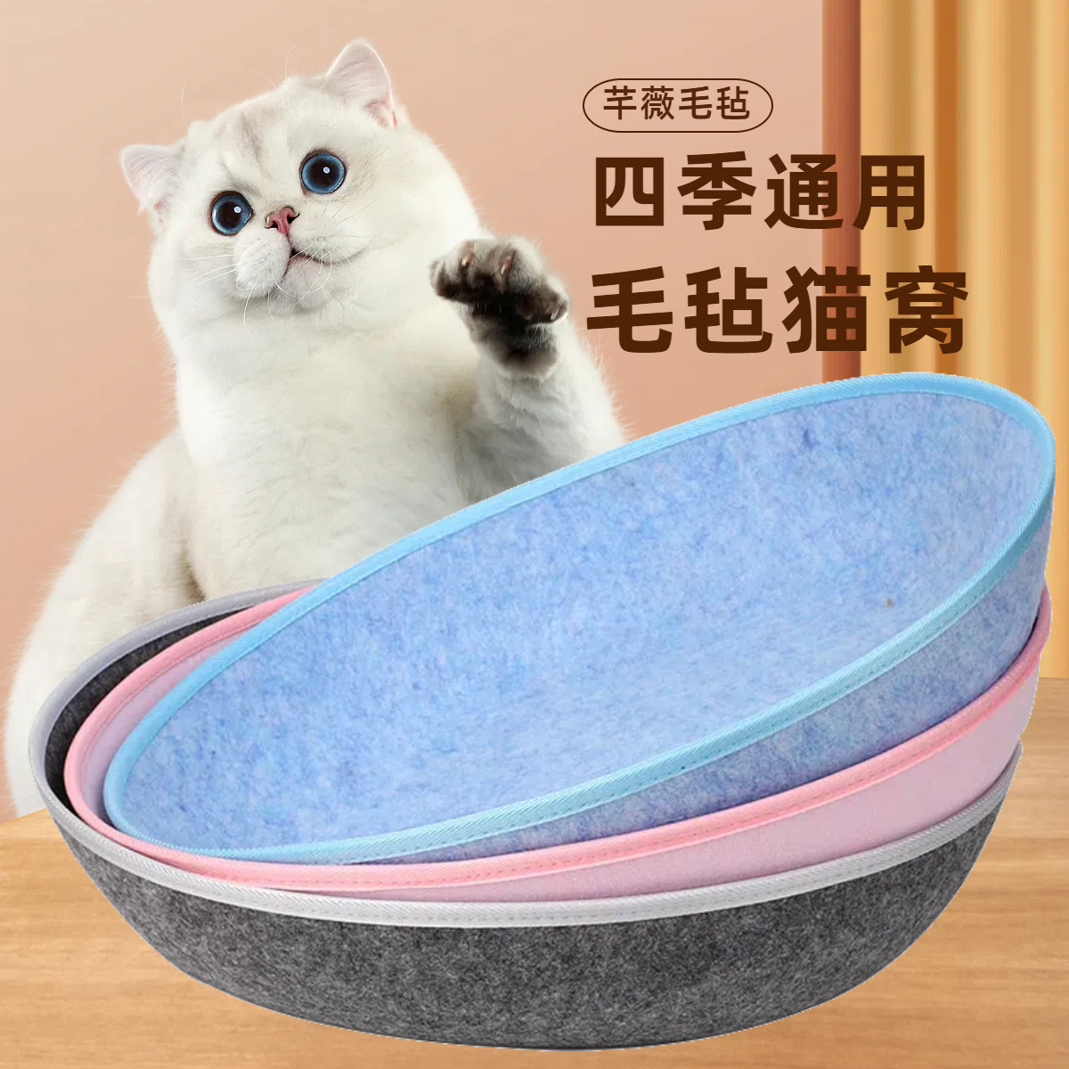Товары для домашних животных, войлочное кошачье гнездо на все времена года, цельное устойчивое к царапинам круглое гнездо, домашняя кошачья кровать, домашнее животное с плоским дном