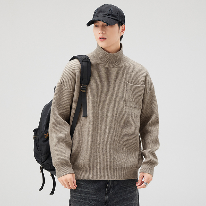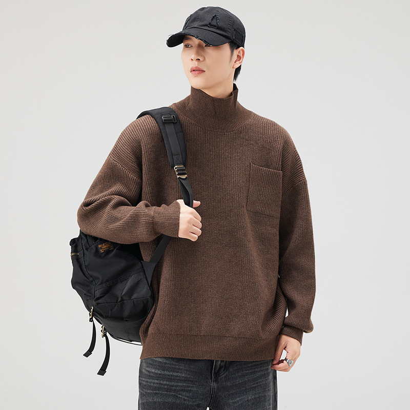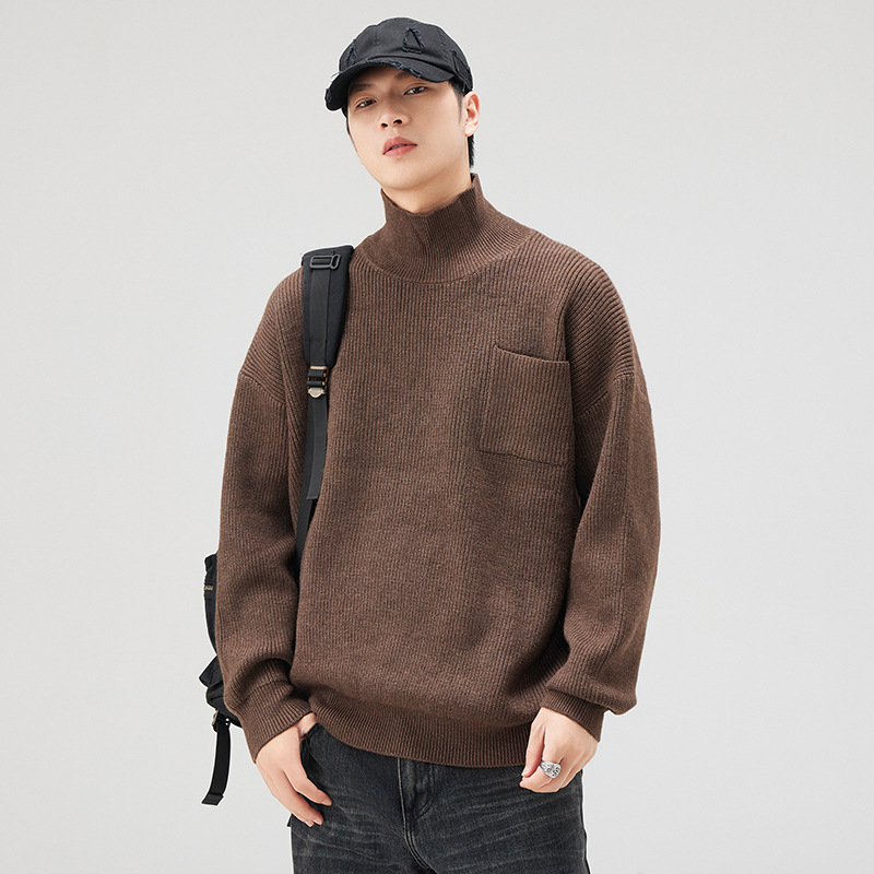 Главная страница > Свитер с полувысоким воротником мужской осенний и зимний новый карманный сплошной цвет японский ретро свитер средний воротник пуловер