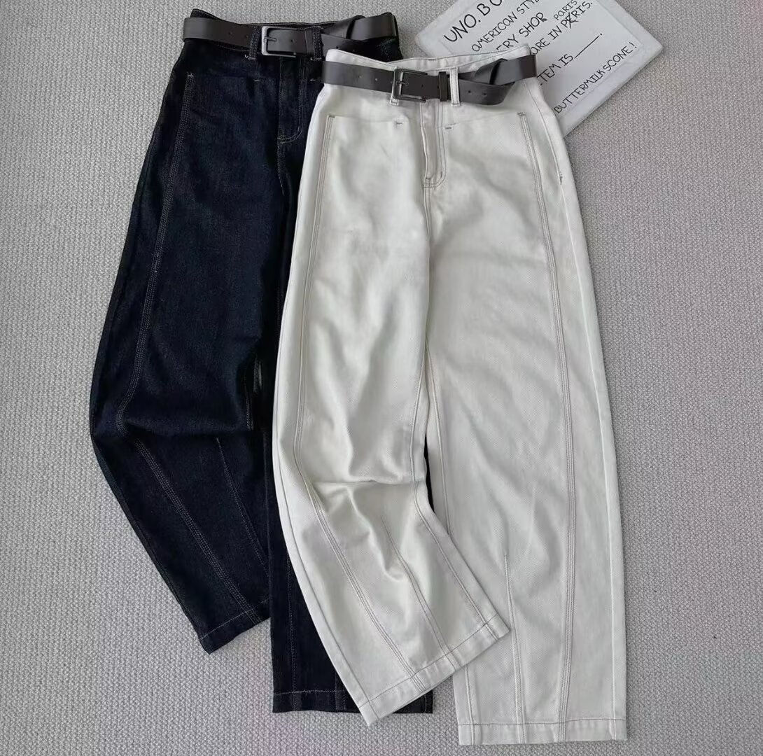 Главная страница > Узкие широкие женские джинсы, весенний новый стиль, фигура груши, большие размеры, высокая талия, утягивающие брюки-бананы.