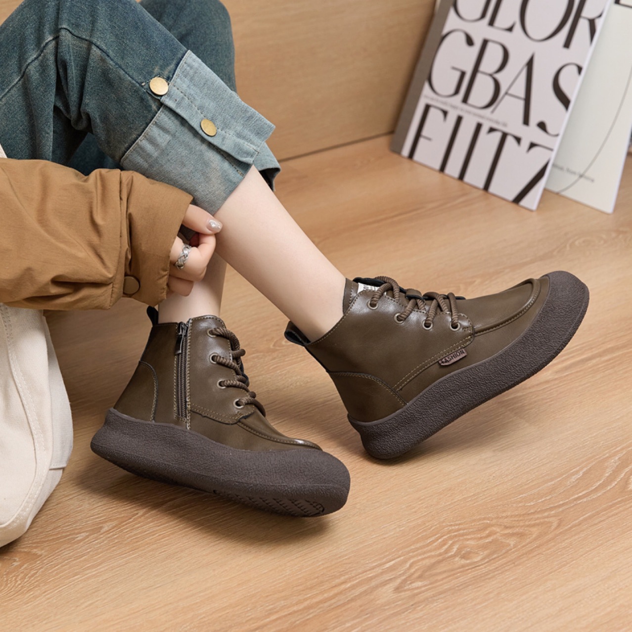 Главная страница > 2024 Осень и зима Новый британский стиль ручной работы с круглой головой из кожи кроссовер высокие и низкие ботинки женские ботинки Martin сапоги