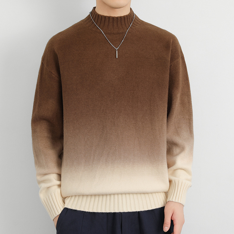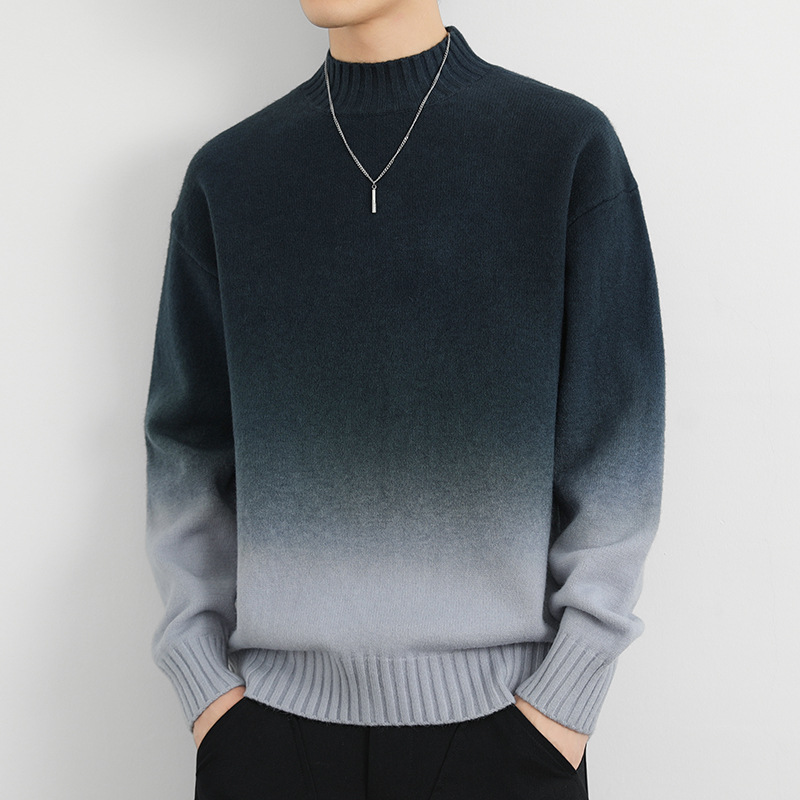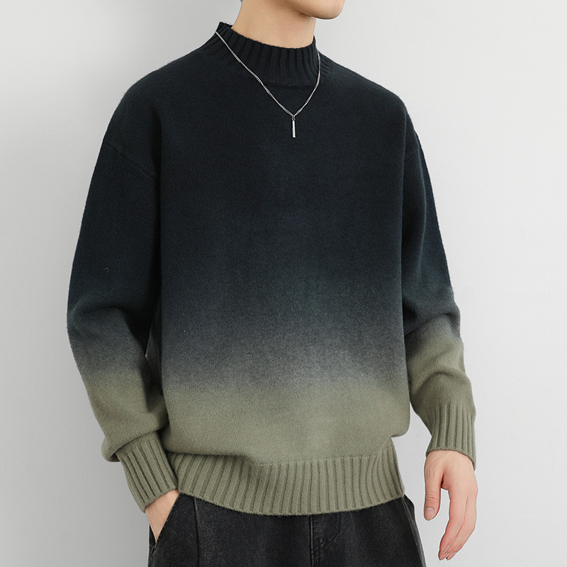 Главная страница > Мужской свитер с градиентом цвета утолщенный прилив свободный внутренний свитер 2024 новый свитер свитер осень-зима
