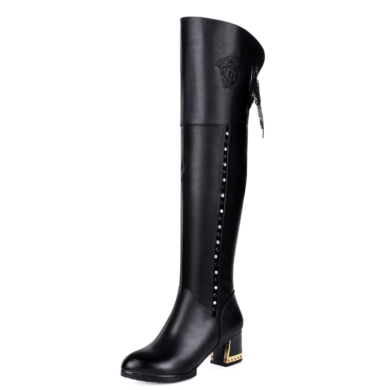 Главная страница > Женские сапоги для похудения выше колена на толстом каблуке, сапоги из натуральной кожи, сексуальные кожаные сапоги на высоком каблуке, Сапоги выше колена, женские сапоги на флисовой подкладке, зимние