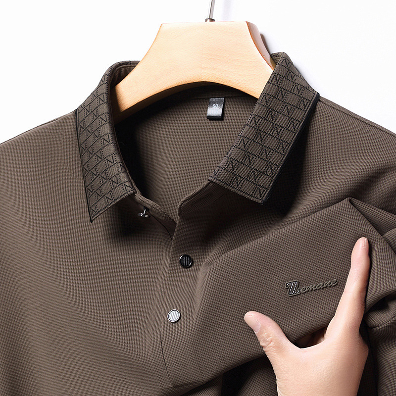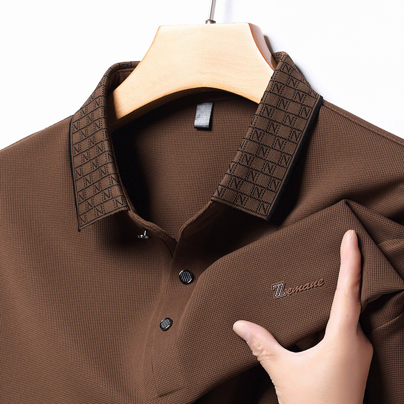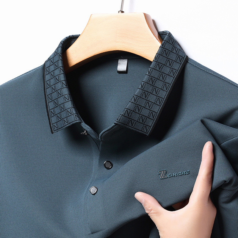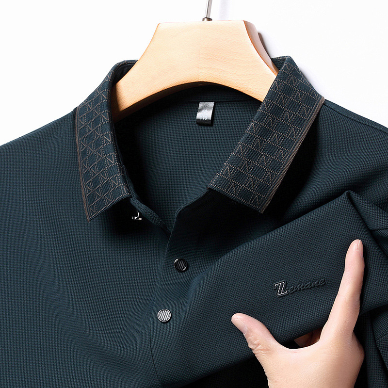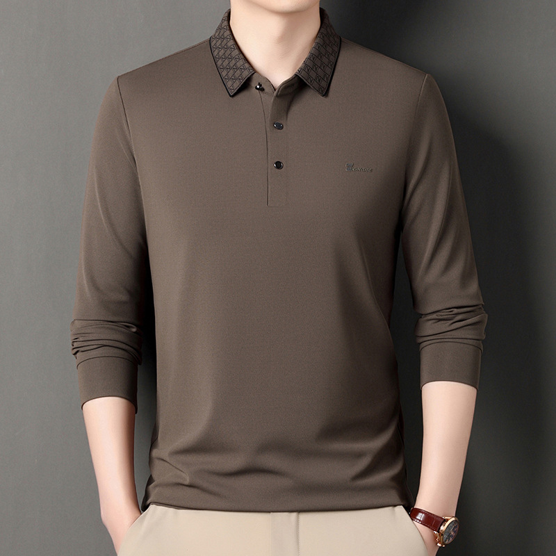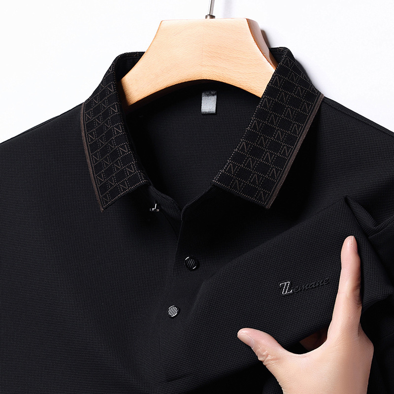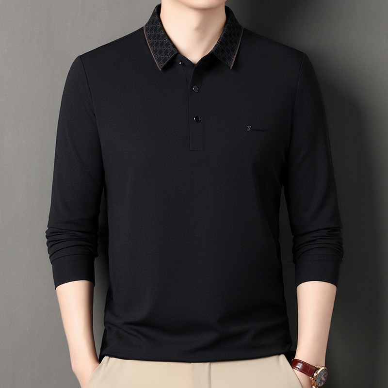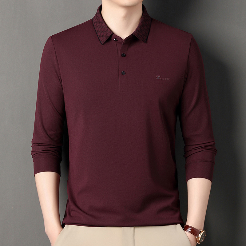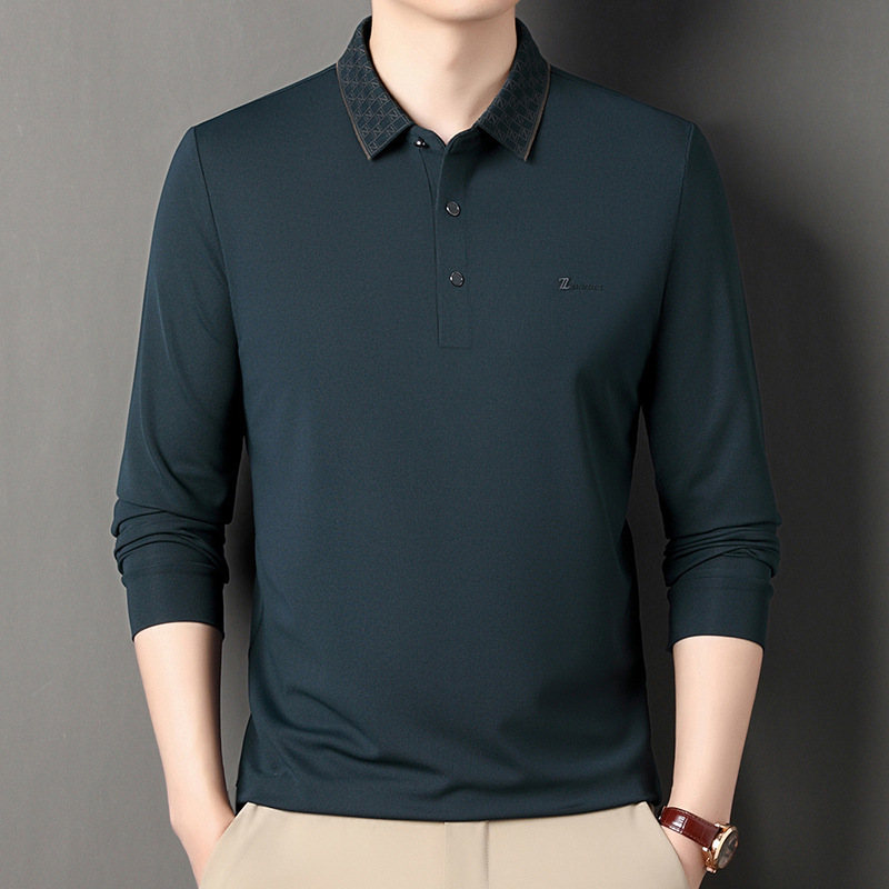 Главная страница > Футболка с длинными рукавами, Мужская весенне-осенняя новая простая универсальная Свободная рубашка-поло среднего возраста с лацканами, Повседневная Нижняя
