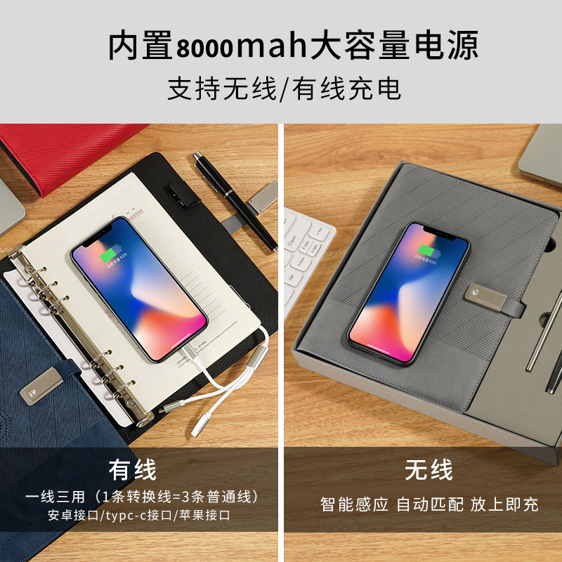 Главная страница > Беспроводная зарядка ноутбук USB-накопитель Блокнот Блокнот Многофункциональный бизнес-источник питания