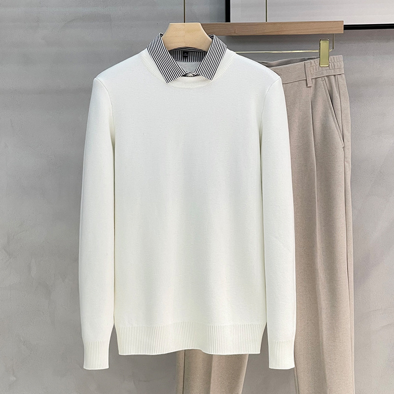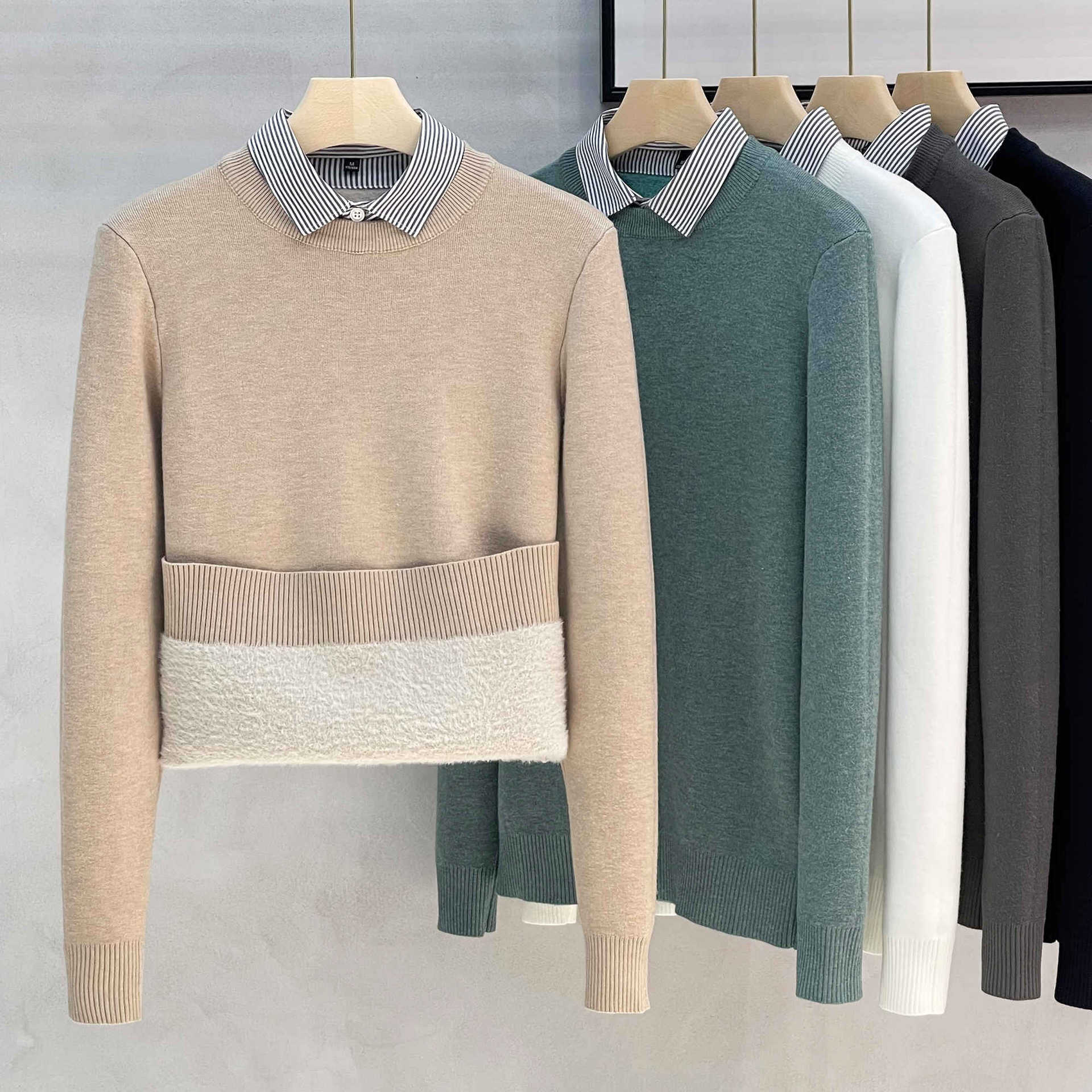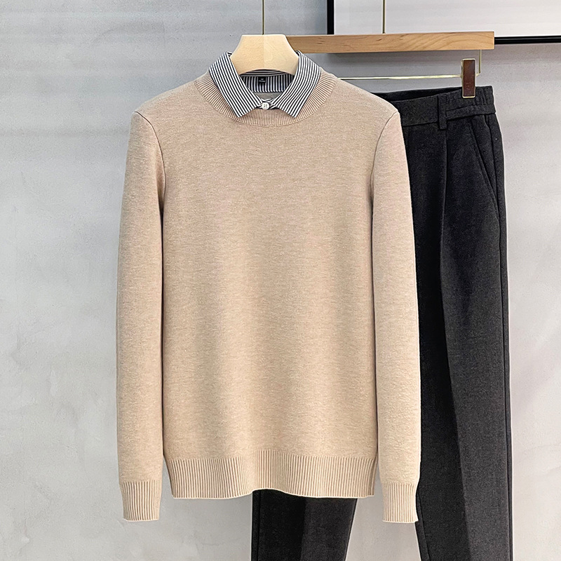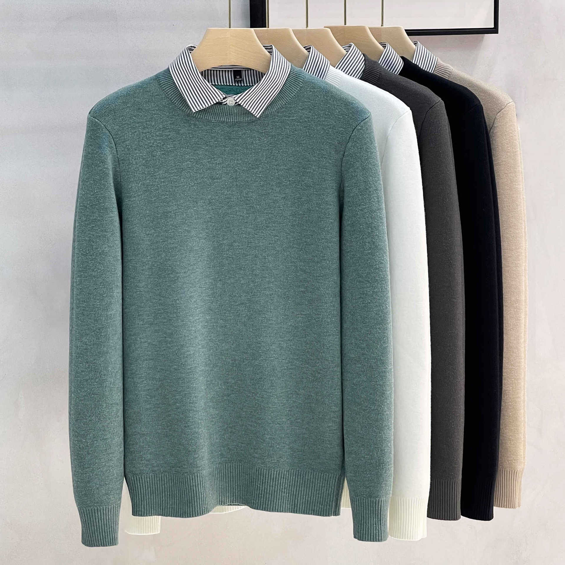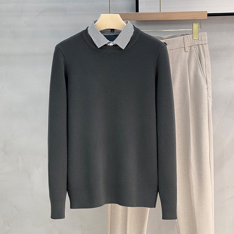Главная страница > Мужская одежда для внешней торговли-Повседневный теплый двухслойный свитер на флисовой подкладке с искусственным двухкомпонентным воротником, осенне-зимний толстый пуловер, свитер
