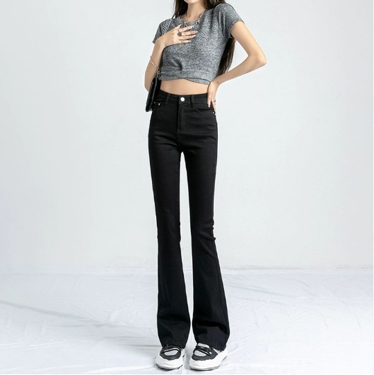 Главная страница > Американские ретро джинсы Bootcut, новые весенне-осенние женские утягивающие брюки с высокой талией для миниатюрных расклешенных брюк «конский копыт»