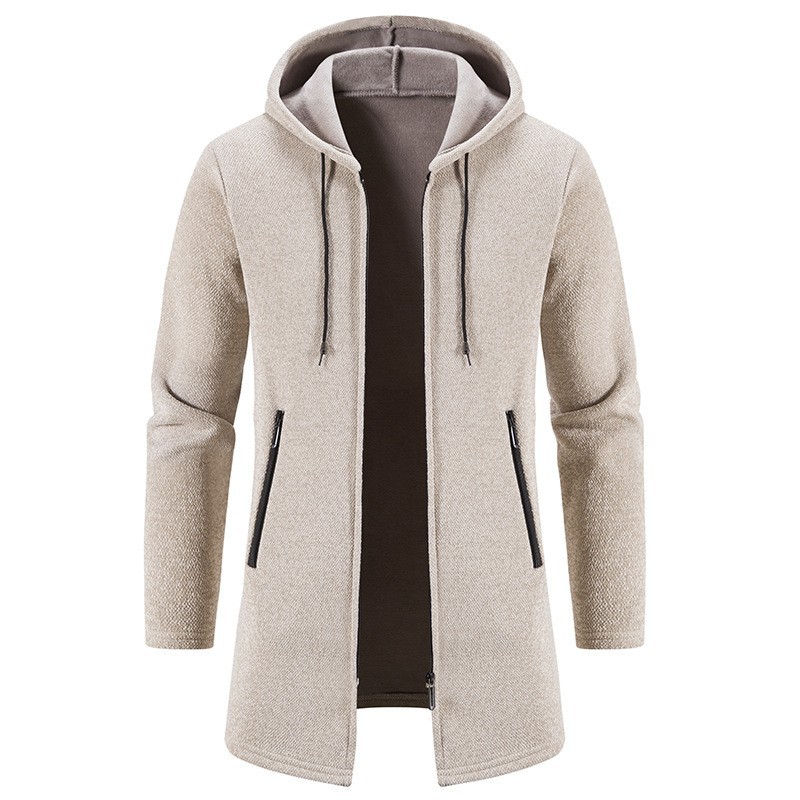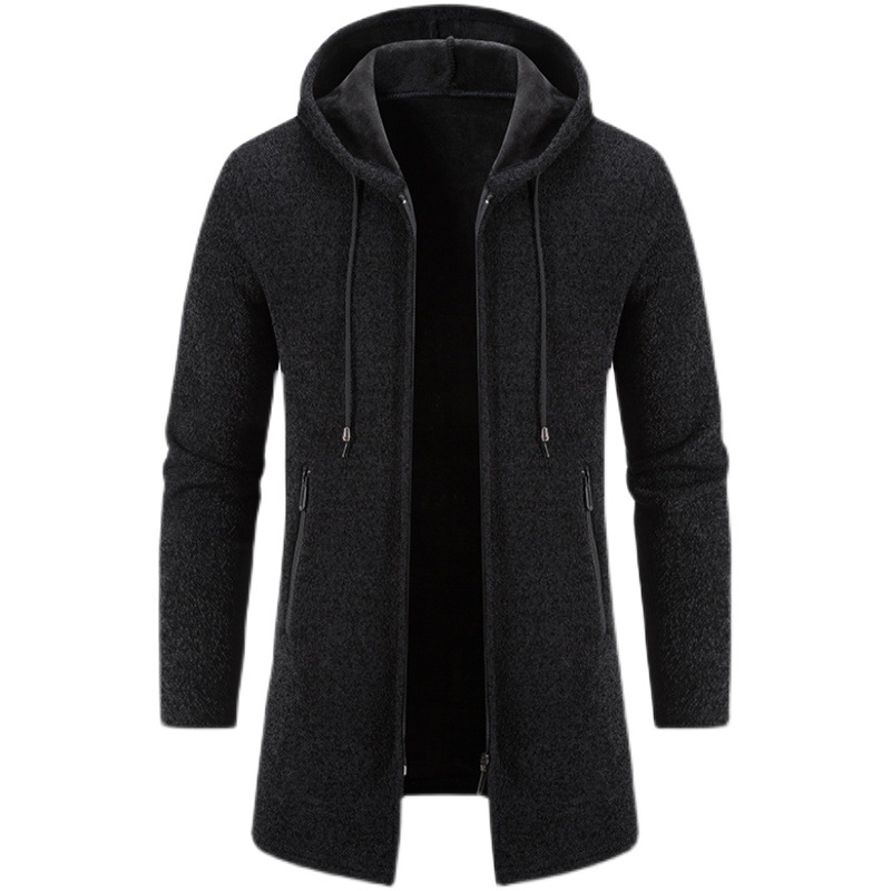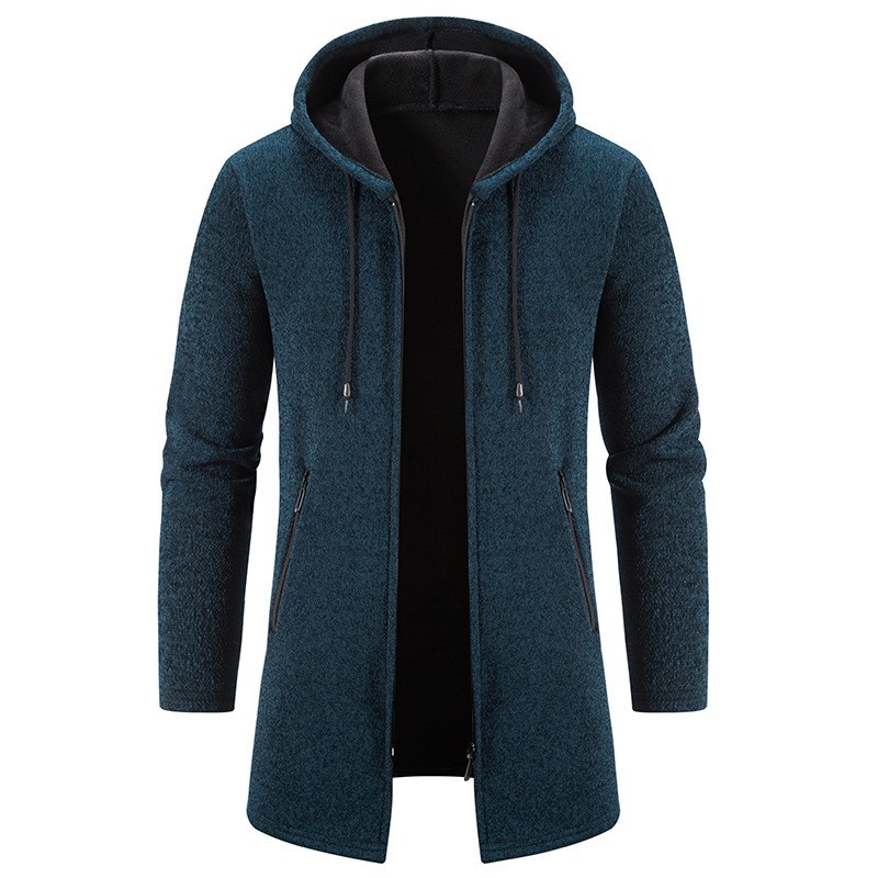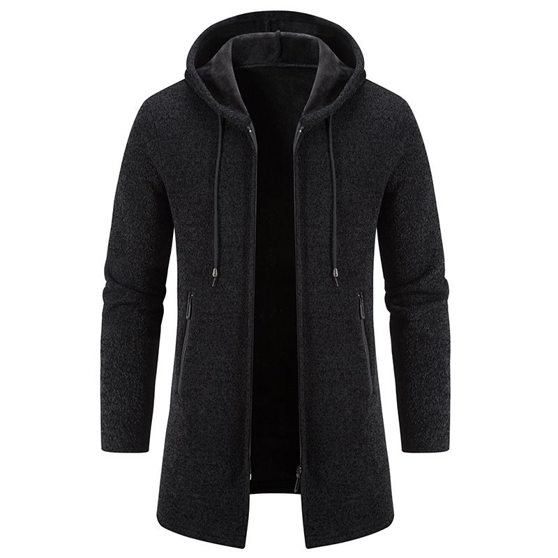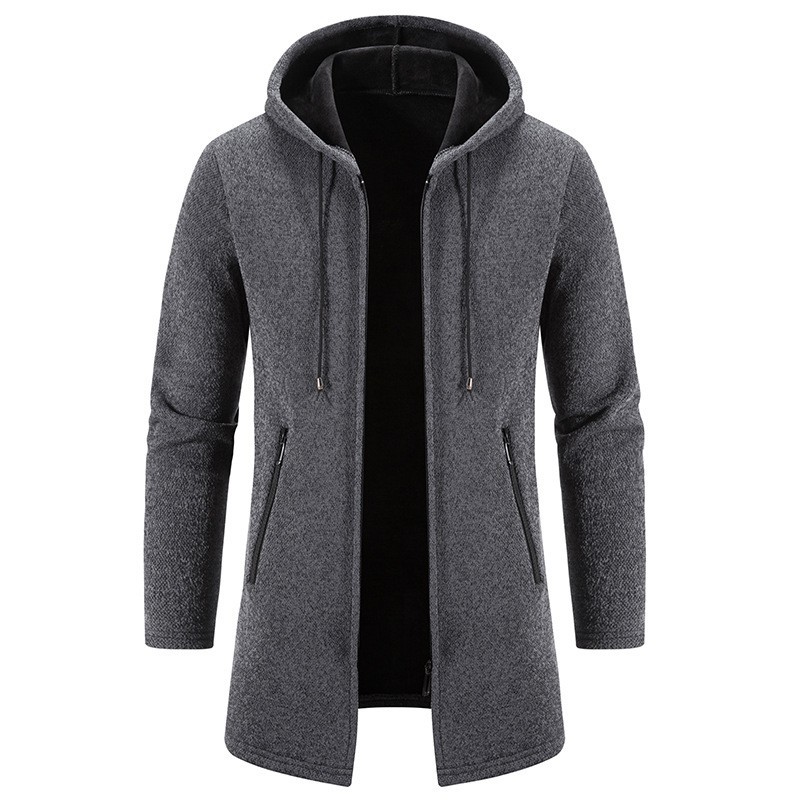 Главная страница > Внешняя торговля, осенне-зимний утолщенный модный однотонный мужской кардиган на флисовой подкладке, длинный свитер из синели с капюшоном, куртка