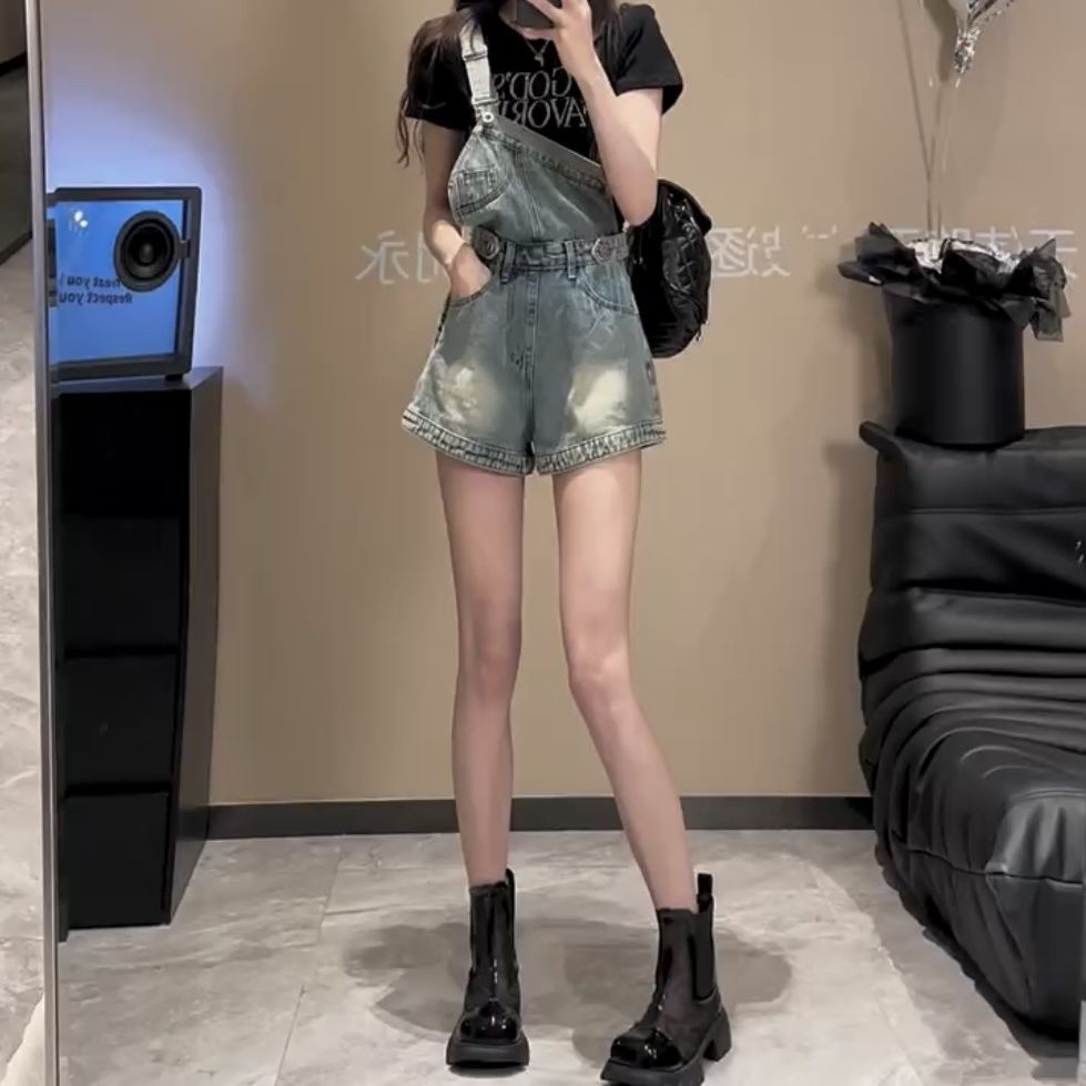 Милые джинсовые комбинезоны в японском стиле, шорты для женщин, лето 2025, новые миниатюрные широкие брюки на одно плечо в стиле ретро нестандартной формы