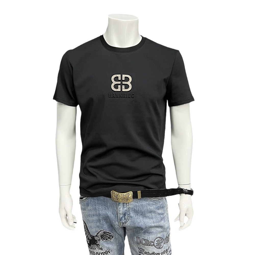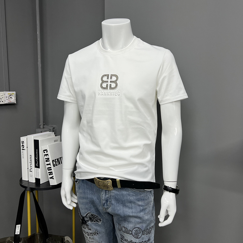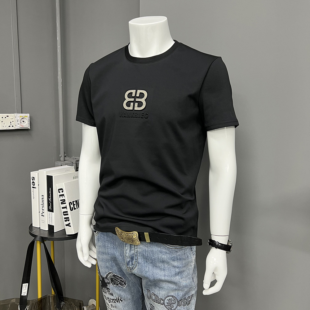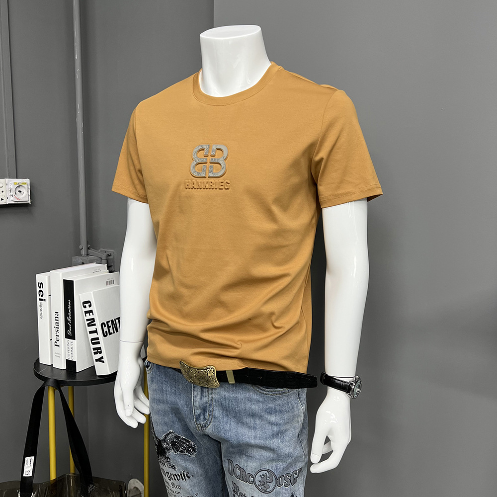 Главная страница > Мужская футболка с коротким рукавом, летняя новая футболка с круглым вырезом и объемной буквой, простой топ из мерсеризованного хлопка, тонкая футболка с коротким рукавом