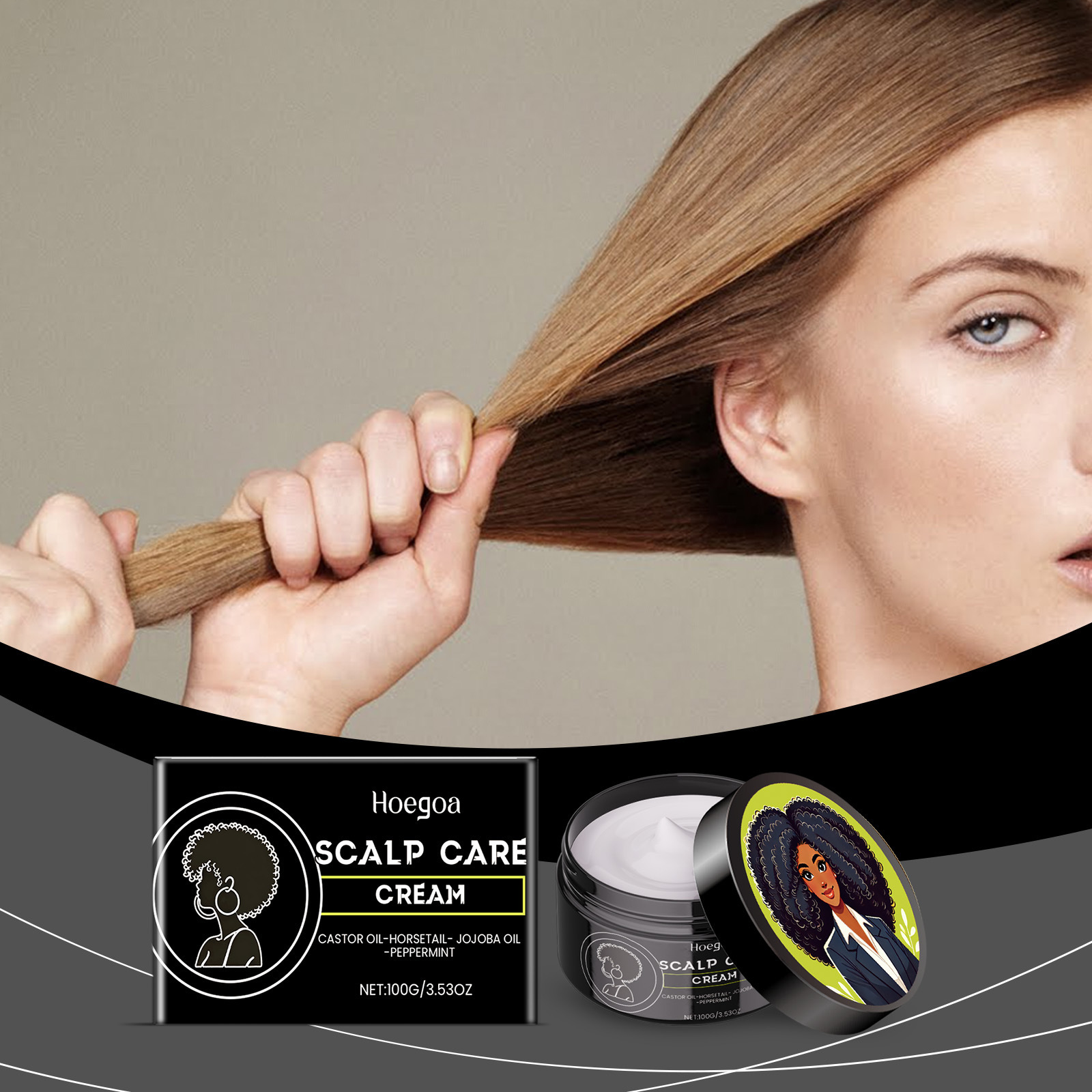 Крем для ухода за кожей головы HOEGOA обеспечивает ежедневный нежный уход, уменьшает сухость и вьющиеся волосы, питает волосы, делает их гладкими и блестящими.