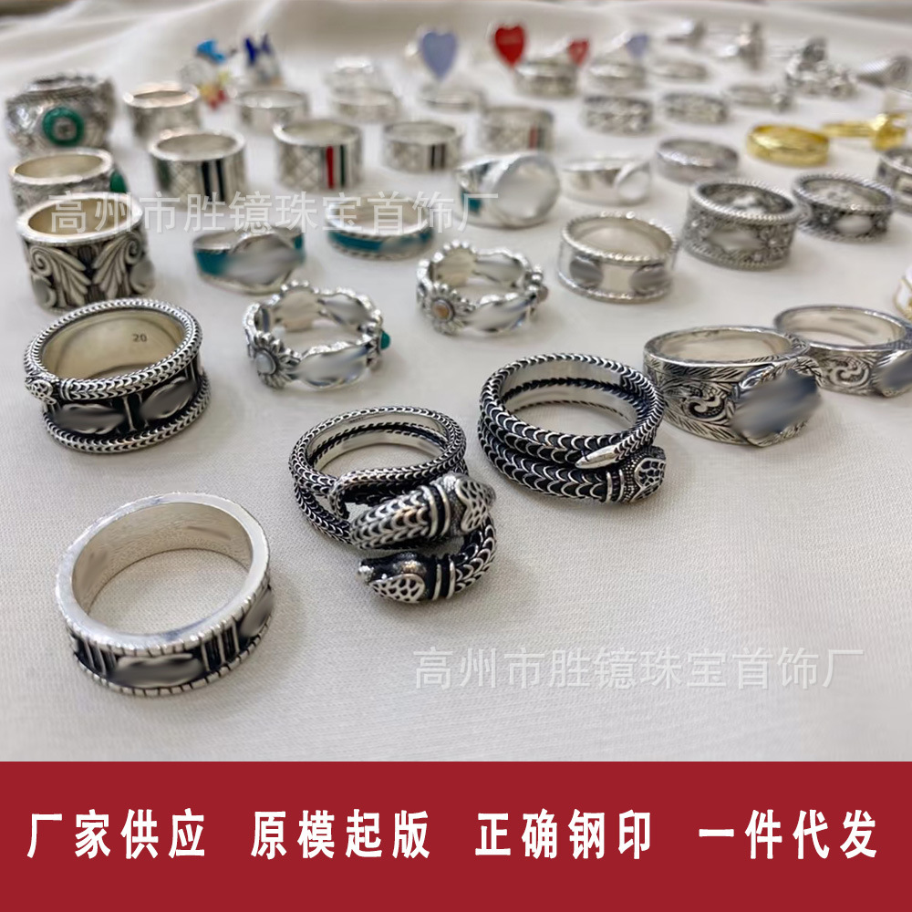 Главная страница > Высококачественное кольцо Gujia Gucci в стиле ретро, винтажные кольца унисекс для пар, двойная G, полосатая эмаль, полая ромашка