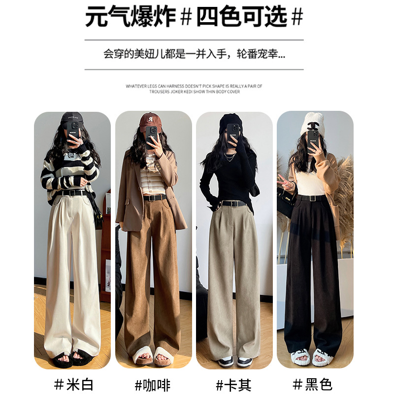 Главная страница > Вельветовые брюки Milad для женщин, новые осенние свободные брюки для похудения, повседневные прямые широкие брюки с высокой талией для женщин.