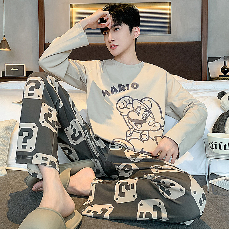 Главная страница > Пижама мужская весна и осень с длинными рукавами с круглым вырезом тонкий подросток мужчина новый мультяшный набор одежды для младших школьников