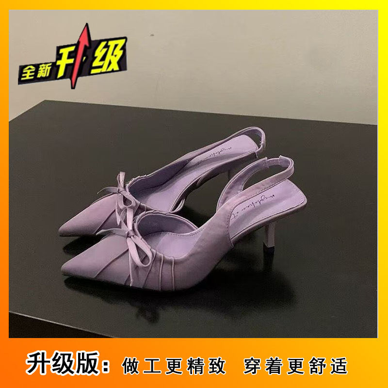 Главная страница > Фиолетовые туфли-мюли с заострённым носком для женщин, в сочетании с юбками, нишевый стиль, новый французский шик 2025 года, элегантные шпильки.