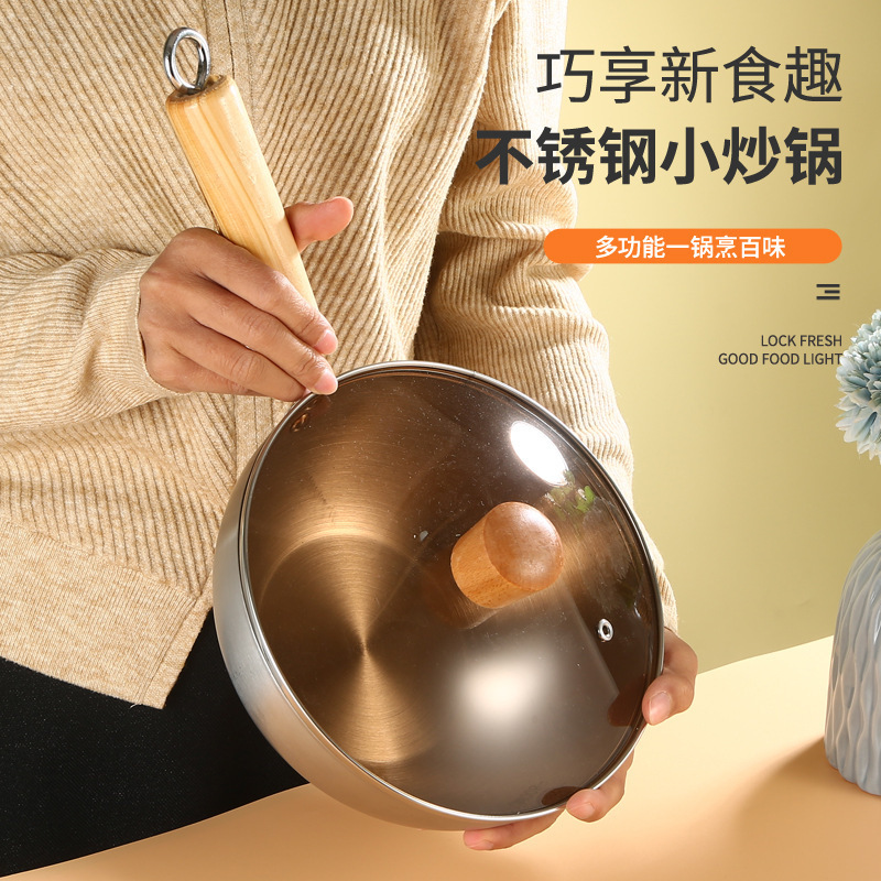 Главная страница > Маленькая сковорода из нержавеющей стали 304, сковорода без покрытия, утолщенная плоская сковорода с плоским дном, уличная сковорода, газовая плита, индукционная плита