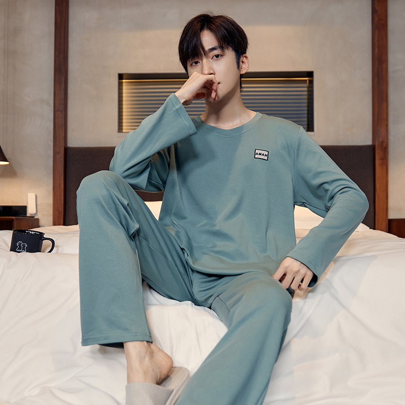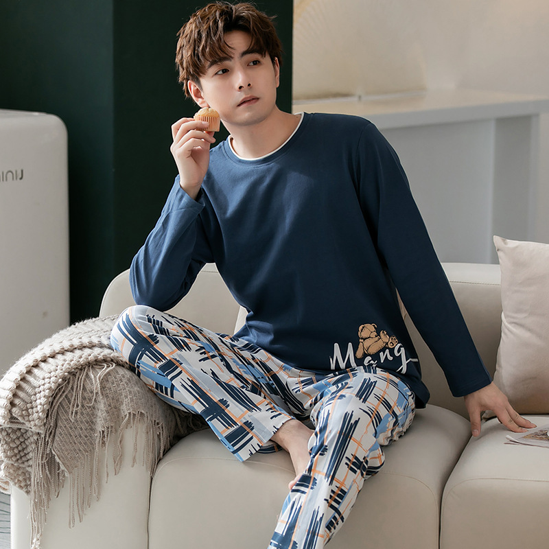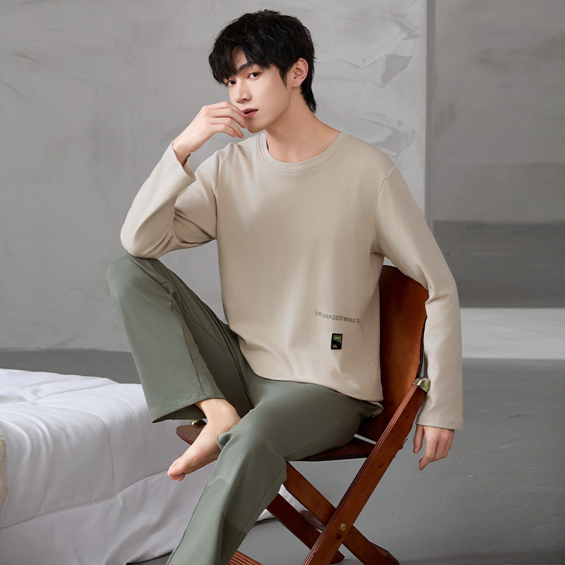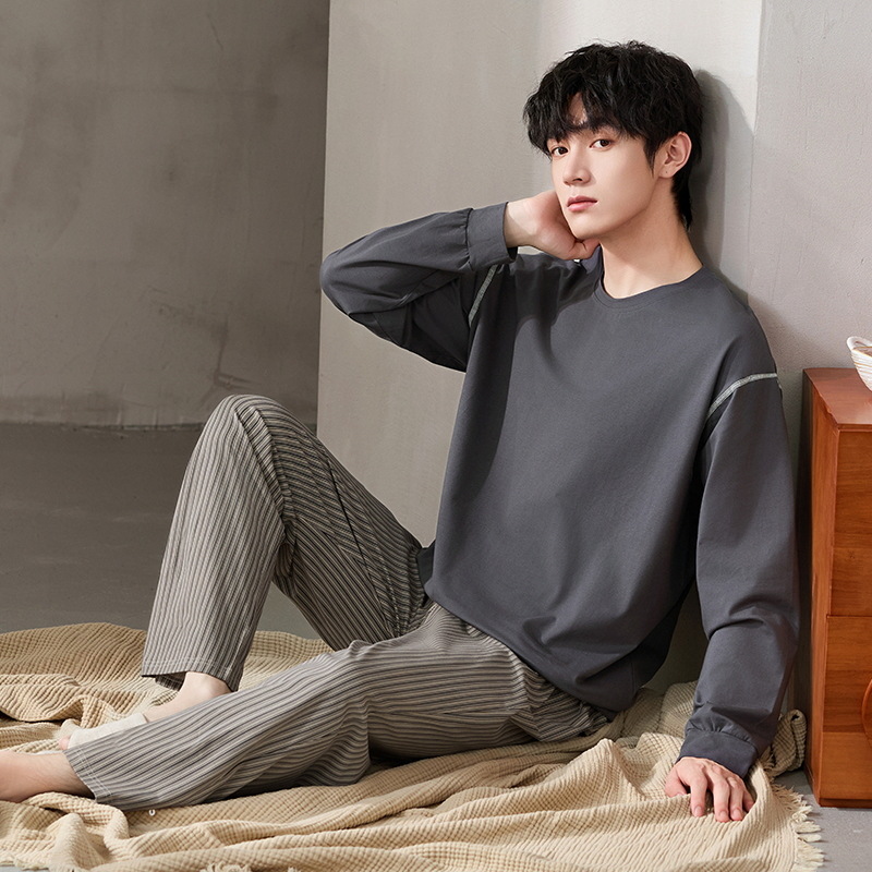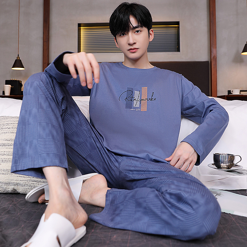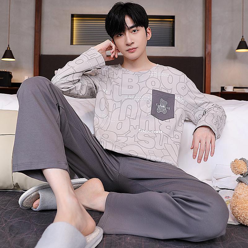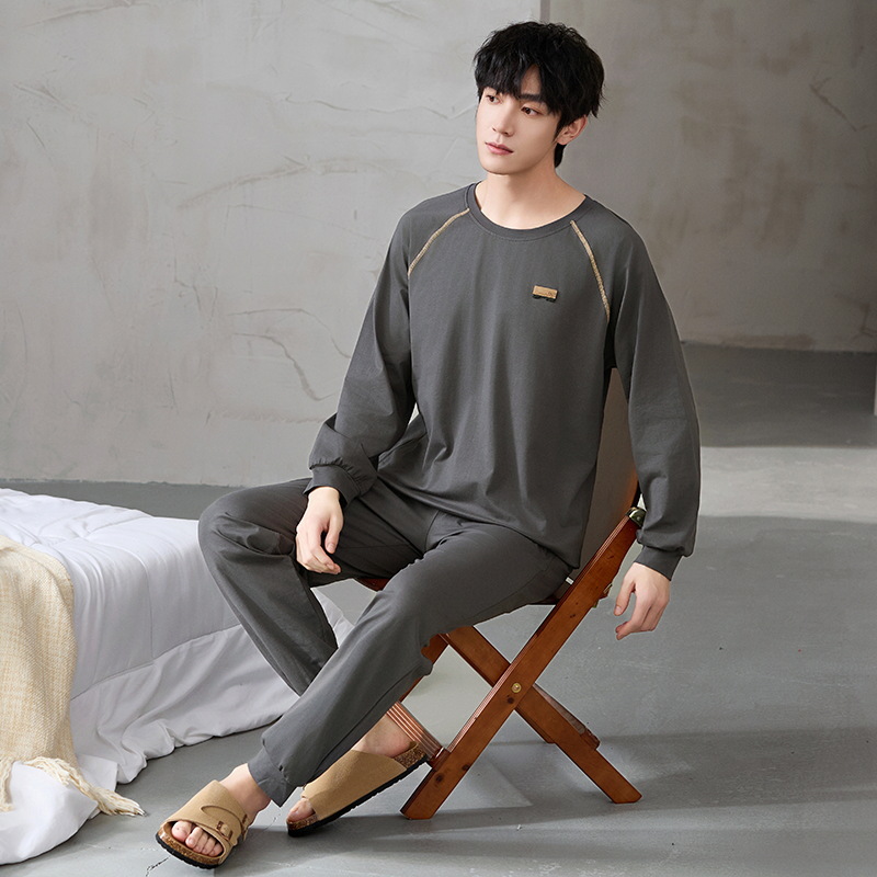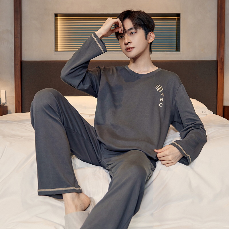 Главная страница > Мужские пижамы из 100% хлопка, весенне-осенние, из чистого хлопка, с длинными рукавами, с круглым вырезом, повседневные, мягкие, приятные к коже, можно носить на улице, полный комплект домашней одежды из хлопка.