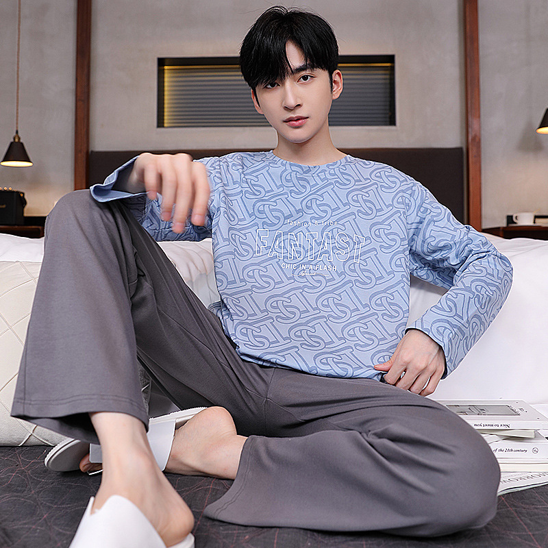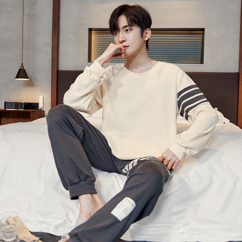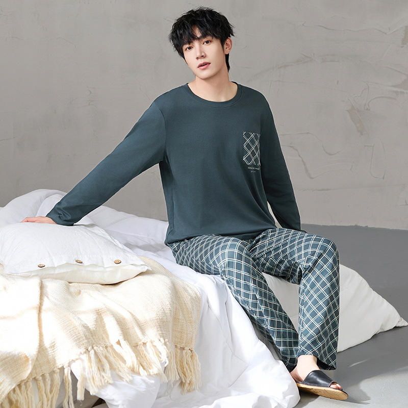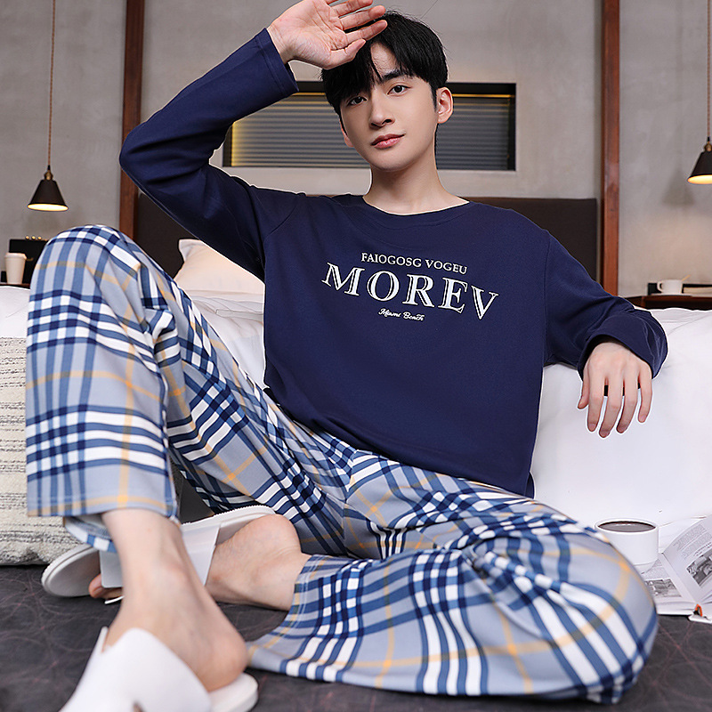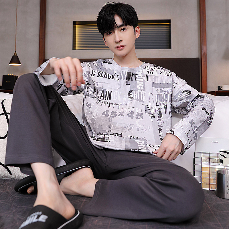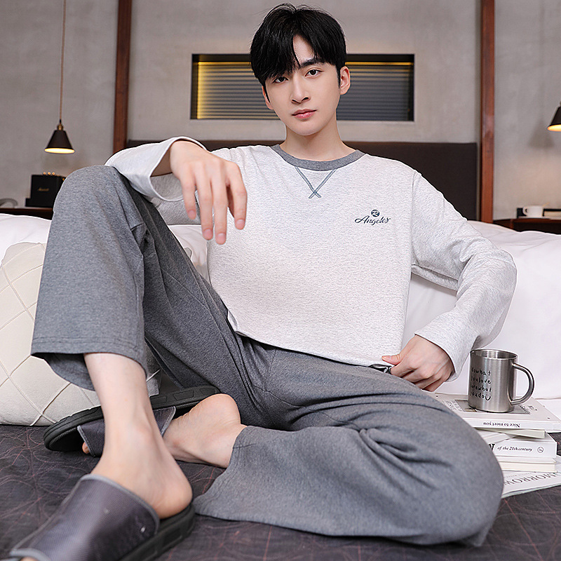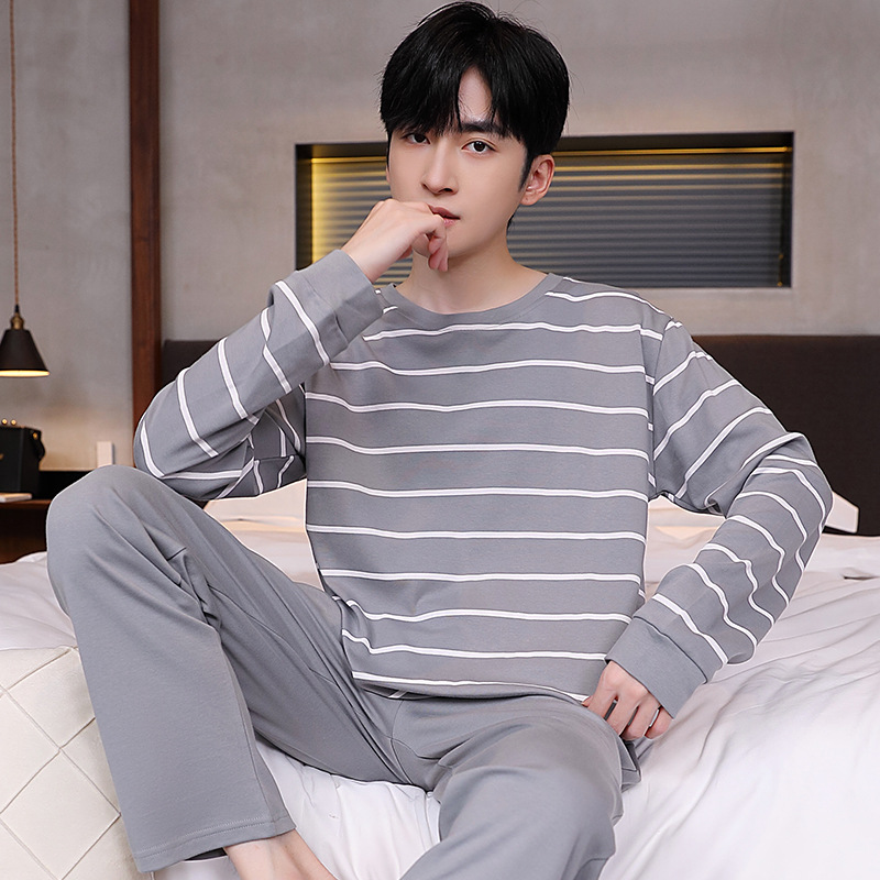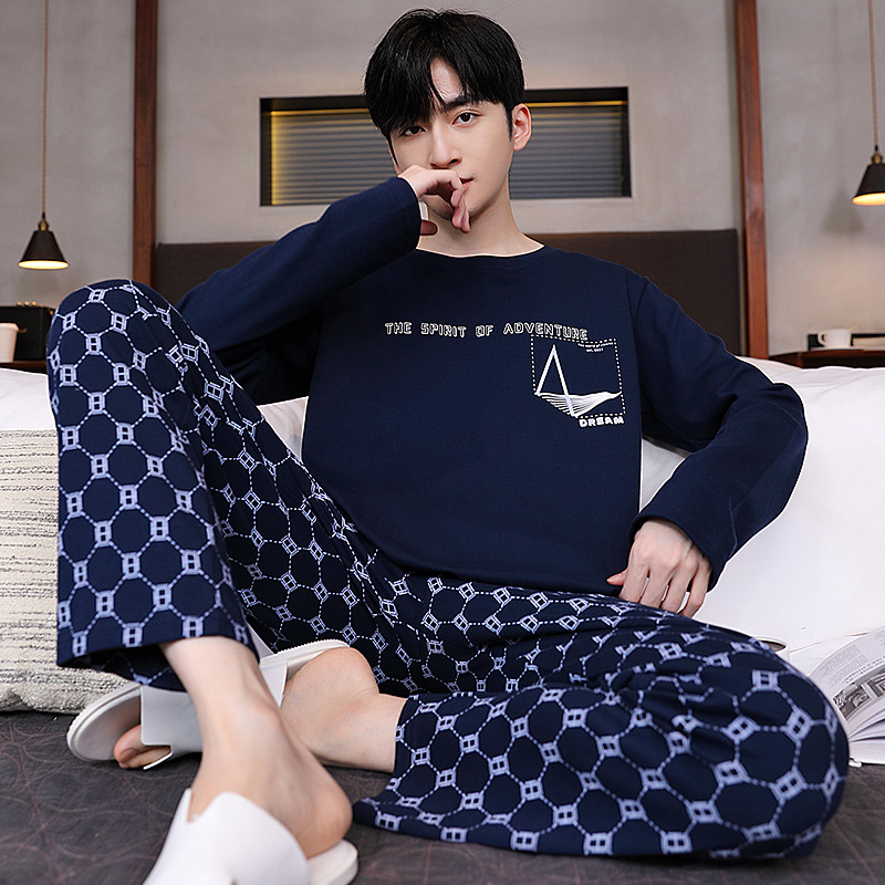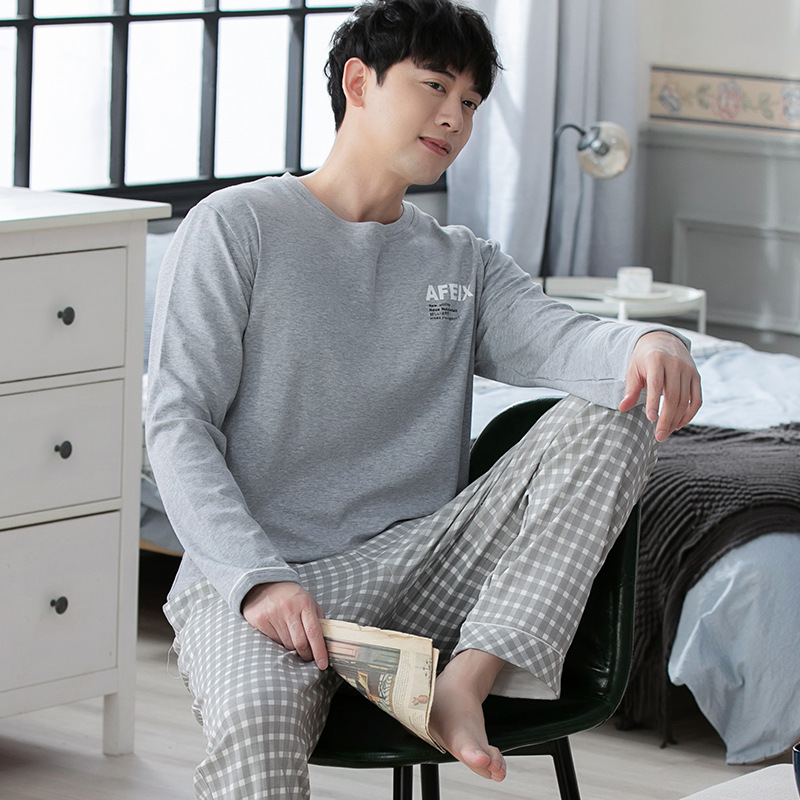Главная страница > Мужские пижамы из 100% хлопка, весенне-осенние, из чистого хлопка, с длинными рукавами, с круглым вырезом, повседневные, мягкие, приятные к коже, можно носить на улице, полный комплект домашней одежды из хлопка.