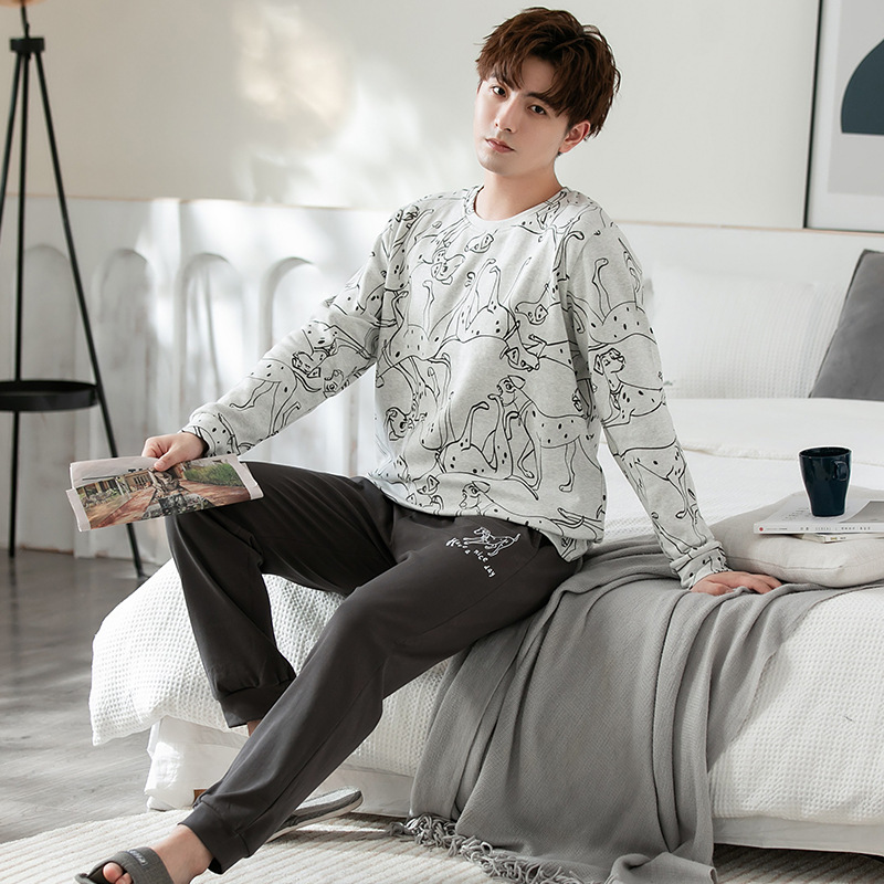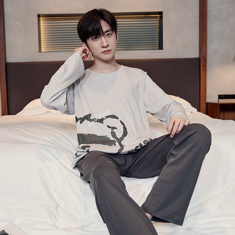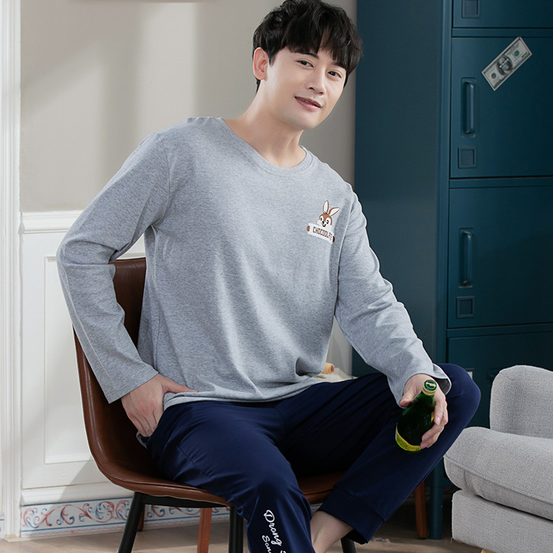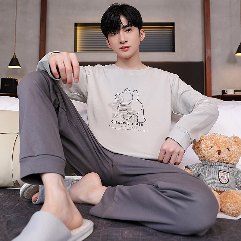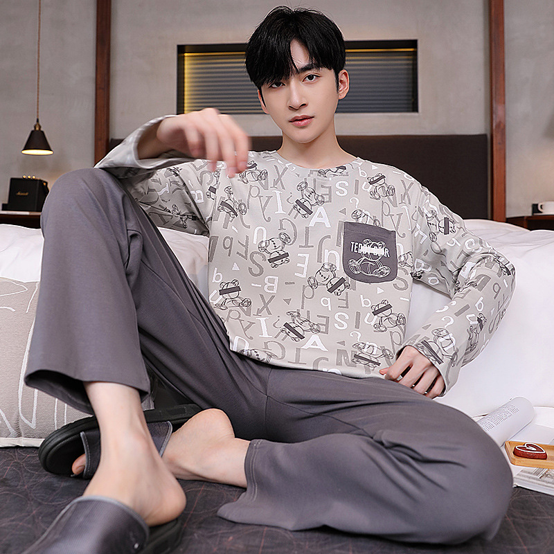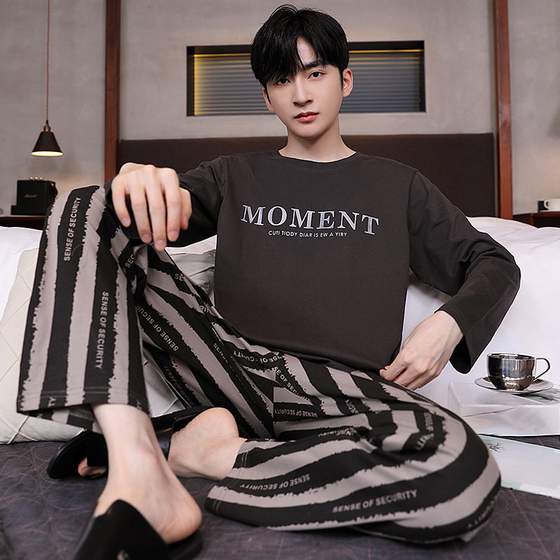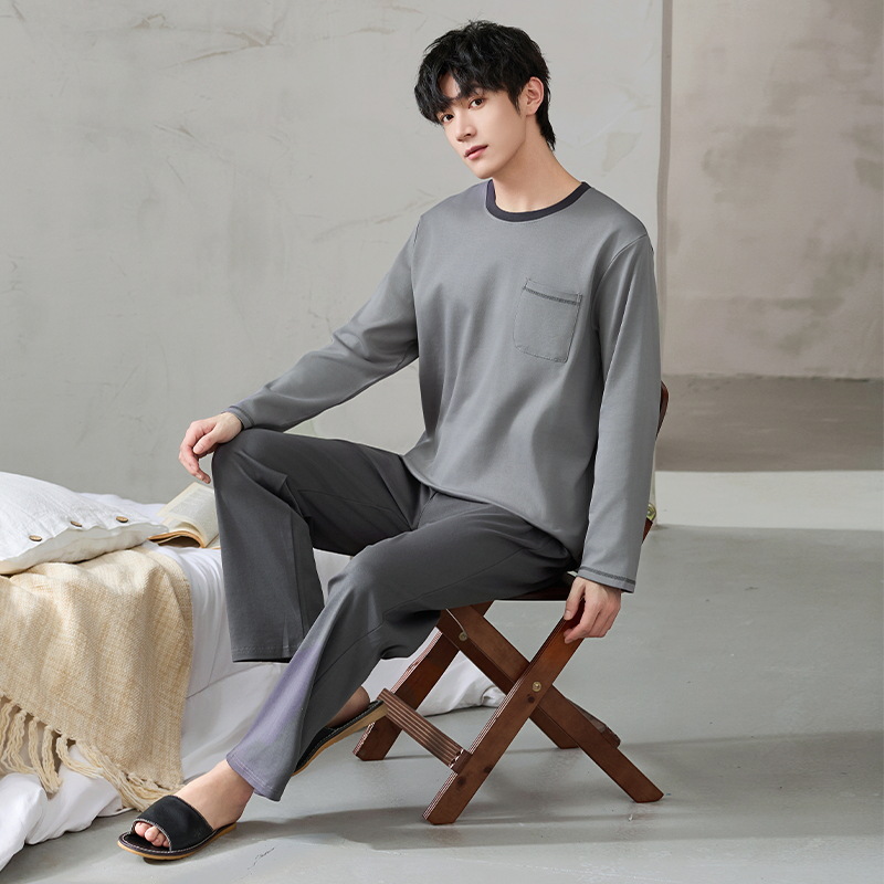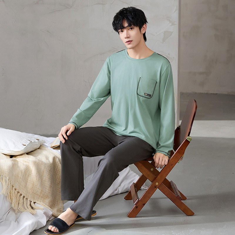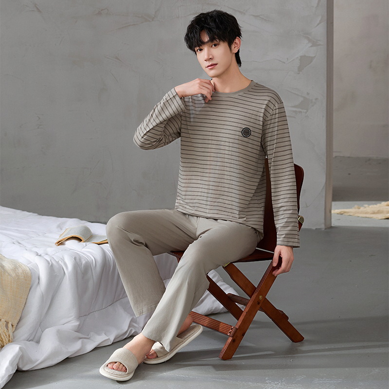 Главная страница > Мужские пижамы из 100% хлопка, весенне-осенние, из чистого хлопка, с длинными рукавами, с круглым вырезом, повседневные, мягкие, приятные к коже, можно носить на улице, полный комплект домашней одежды из хлопка.
