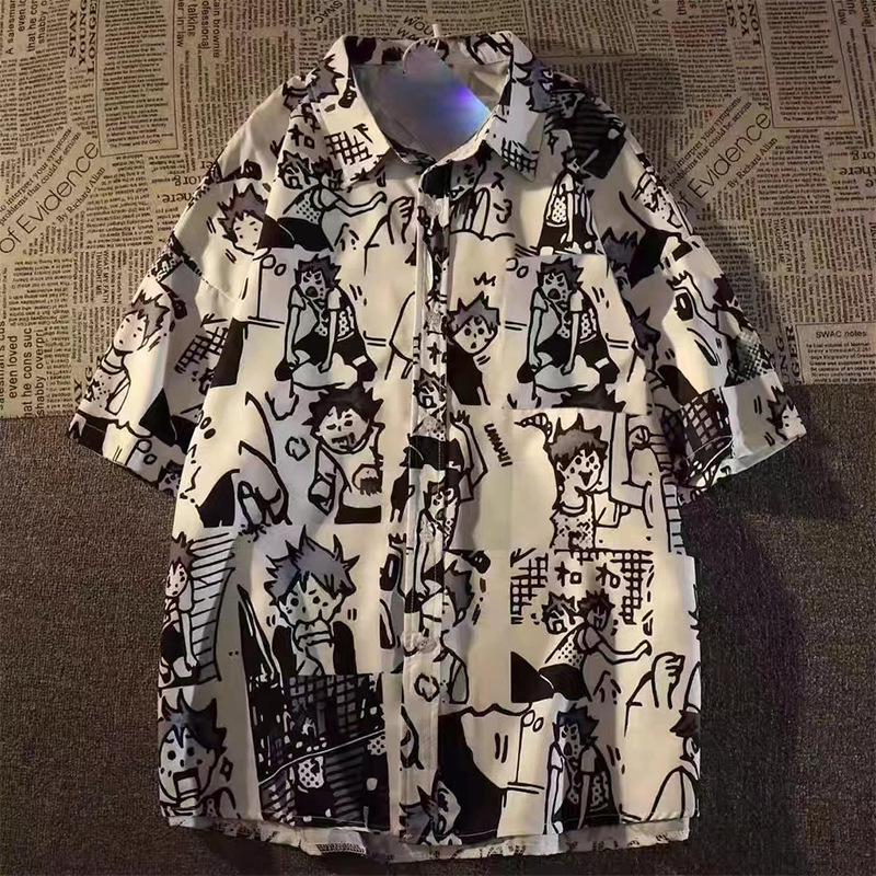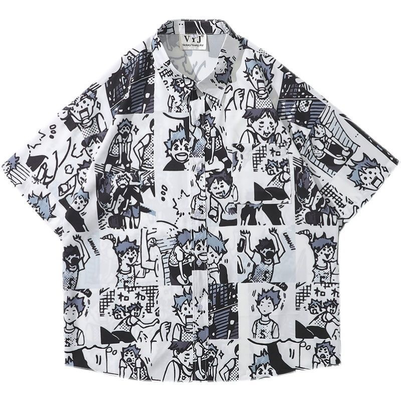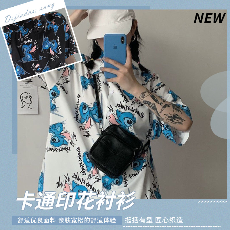 Главная страница > Рубашка женская дизайнерская ниша с коротким рукавом Новая летняя тонкая Свободная рубашка в Корейском стиле с мультяшным принтом женская