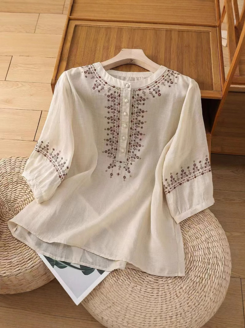 Главная страница > Новинка лета 2025 года, рубашка из хлопка и льна, женский пуловер в стиле ретро с ромбовидной вышивкой, темпераментный повседневный пуловер, рубашка