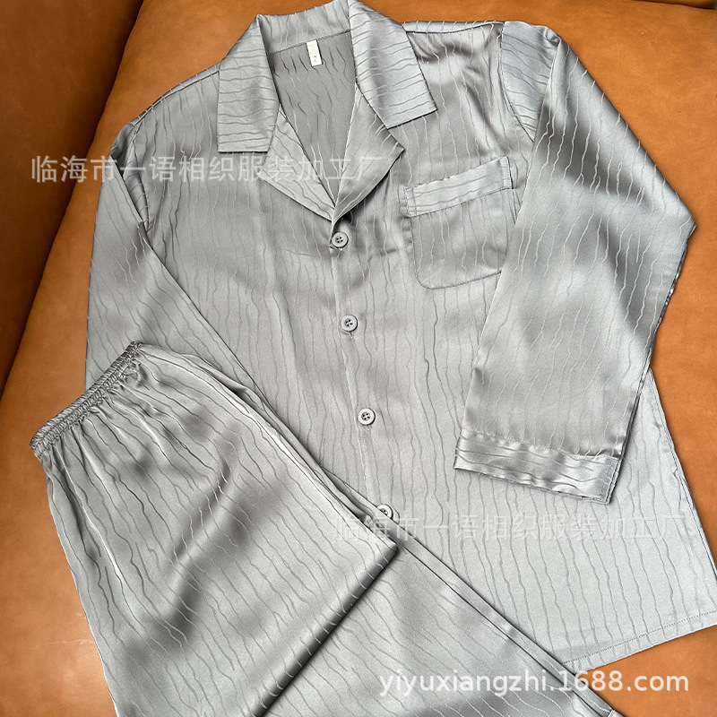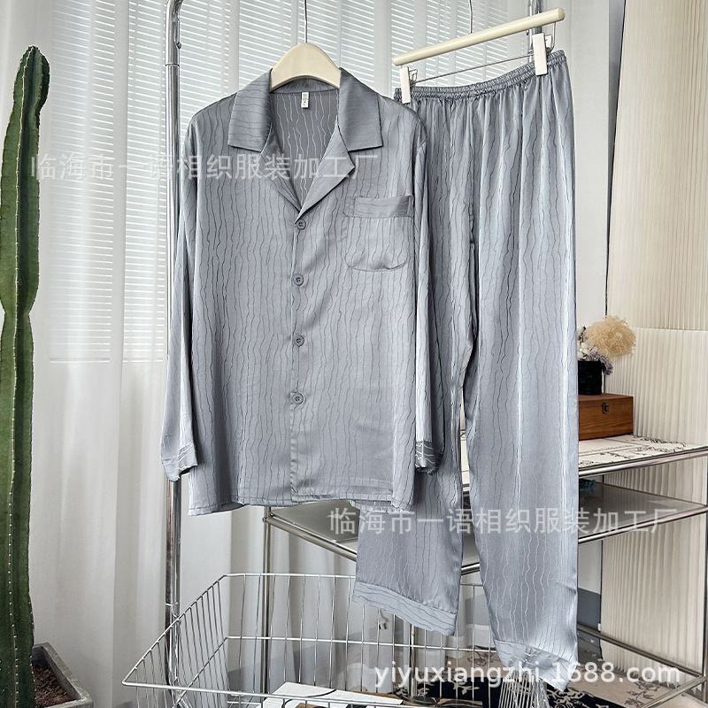 Главная страница > Мужской пижамный комплект из искусственного шелка с длинными рукавами и брюками, осенний принт 2025 года, тонкий, оптом