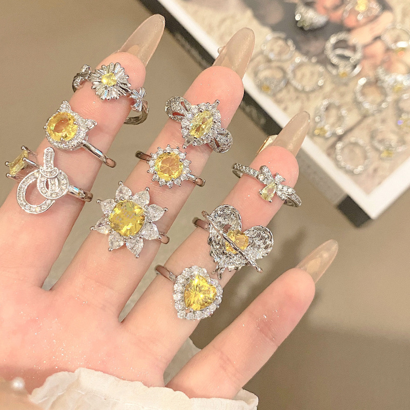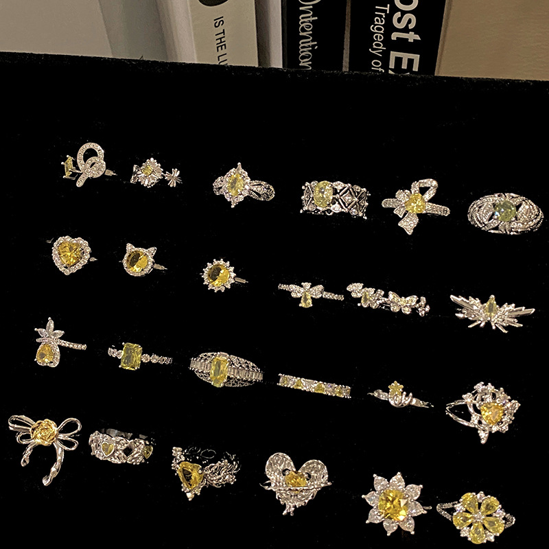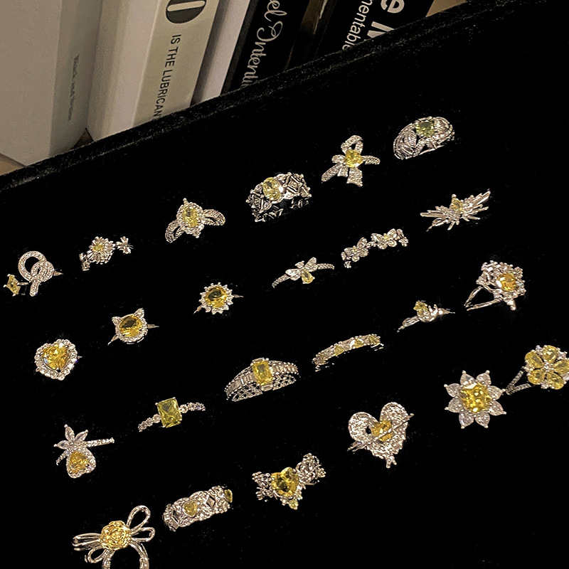 Главная страница > Твидовый стиль, украшенный микровышивкой, сладкий и крутой желтый бриллиант, элегантное модное открытое кольцо с вырезом, женское изысканное доступное роскошное высококачественное кольцо на указательный палец