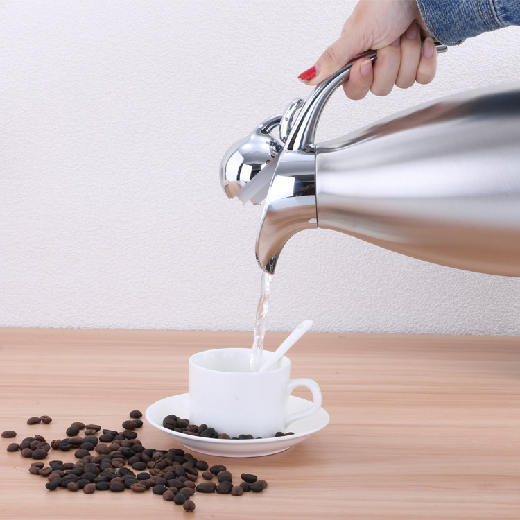 Главная страница > Изоляция из нержавеющей стали Кофейник Европейский стиль Бытовой чайник с теплой горячей водой Чайник с холодной водой 2 л большой емкости Гостиничный приветственный горшок Чайник