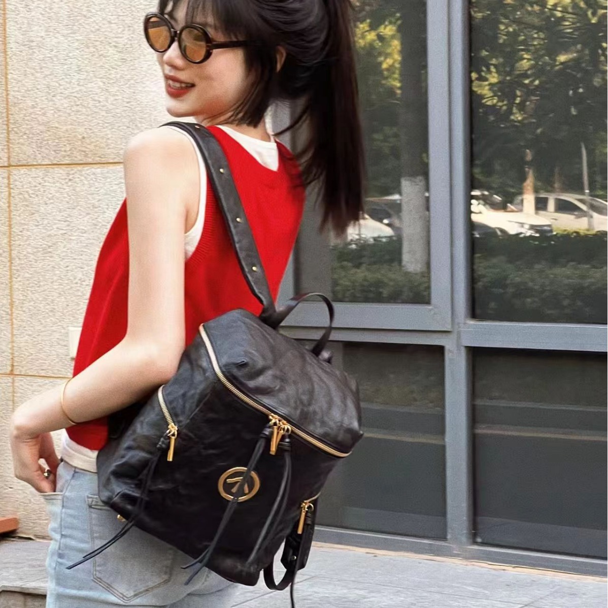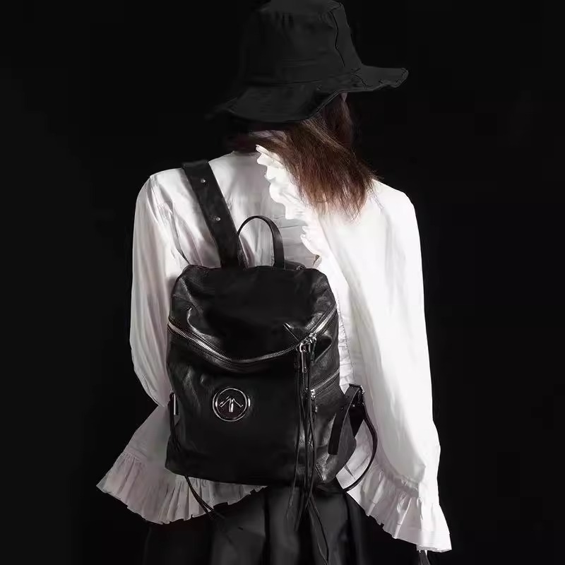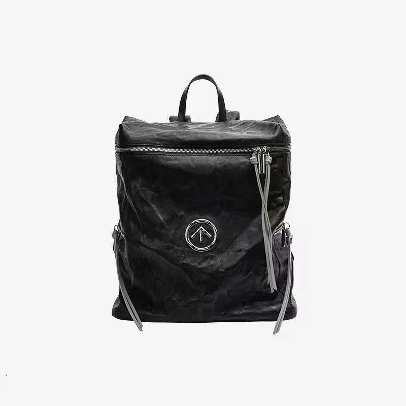 Главная страница > Унисекс-рюкзак из плиссированной овчины с большой вместимостью и универсальным дизайном в виде черного камня в форме стрелы.