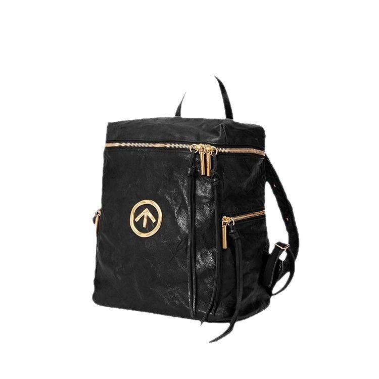 Унисекс-рюкзак из плиссированной овчины с большой вместимостью и универсальным дизайном в виде черного камня в форме стрелы.