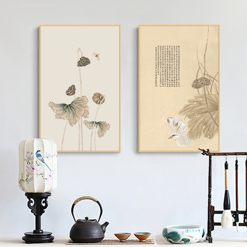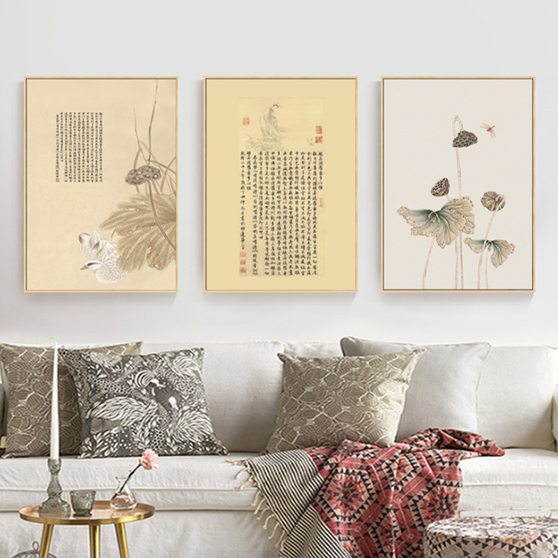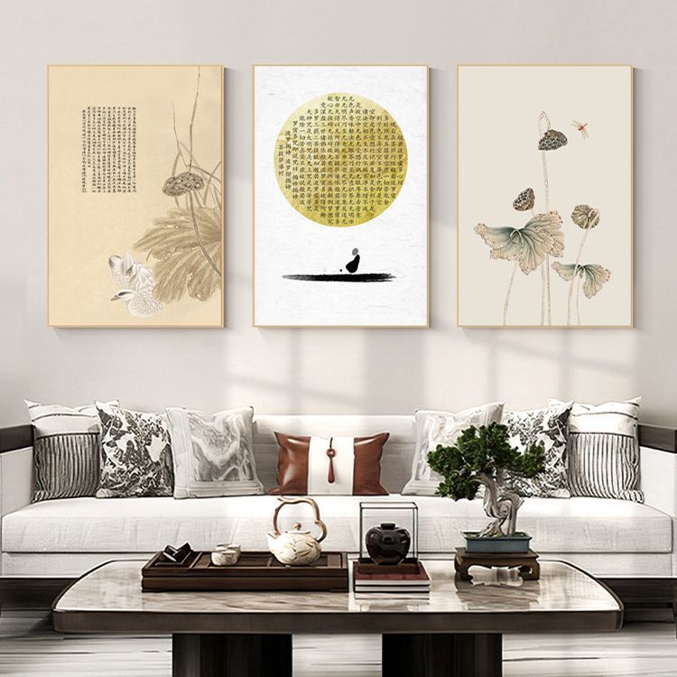 Главная страница > Дзен декоративная живопись гостиная диван фон Стена Ресторан Фреска чайная комната китайский стиль Новый китайский стиль Тройная подвесная картина