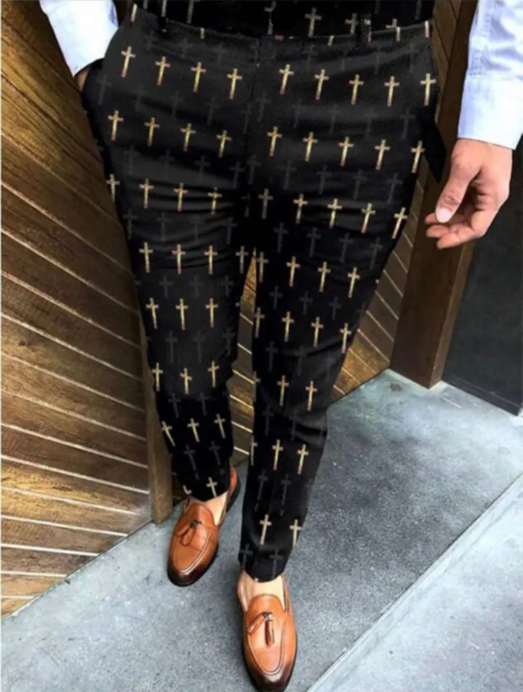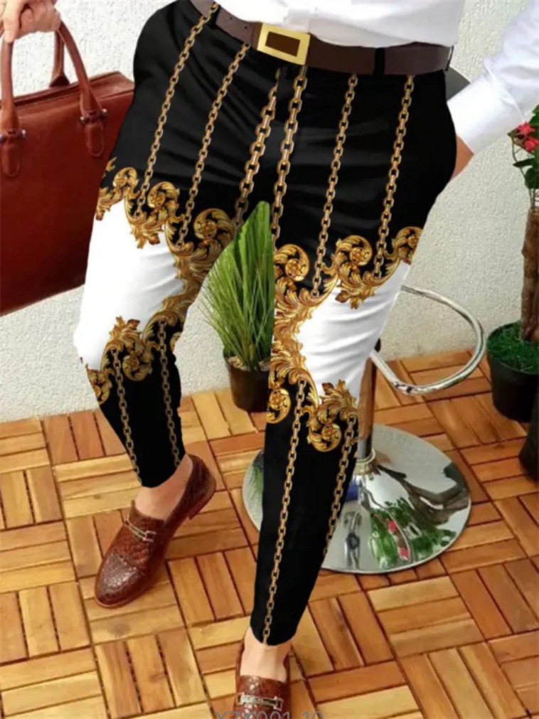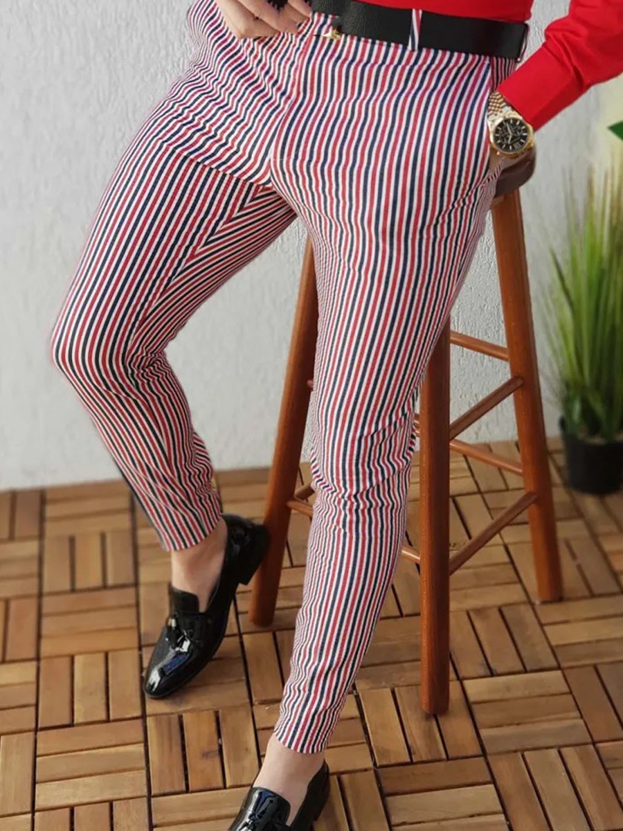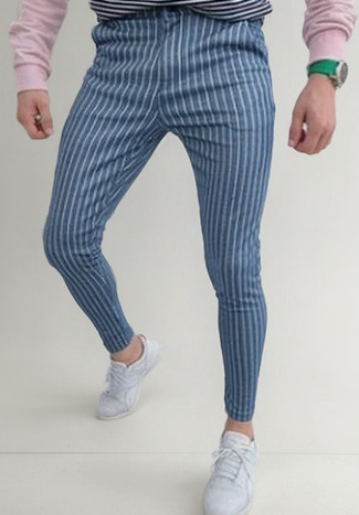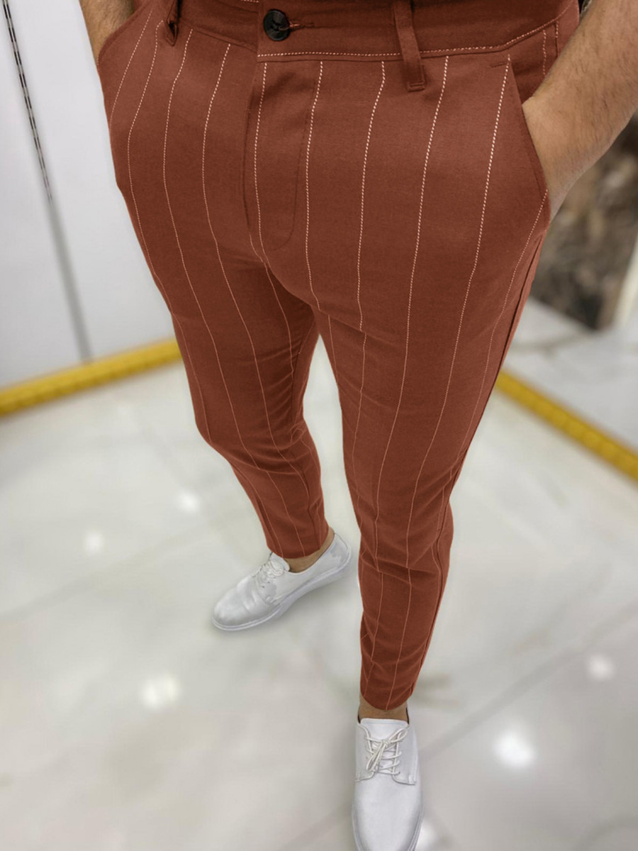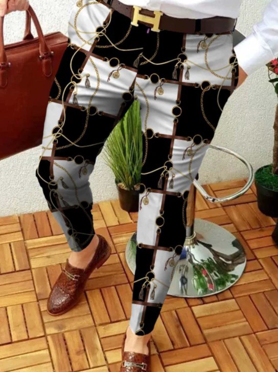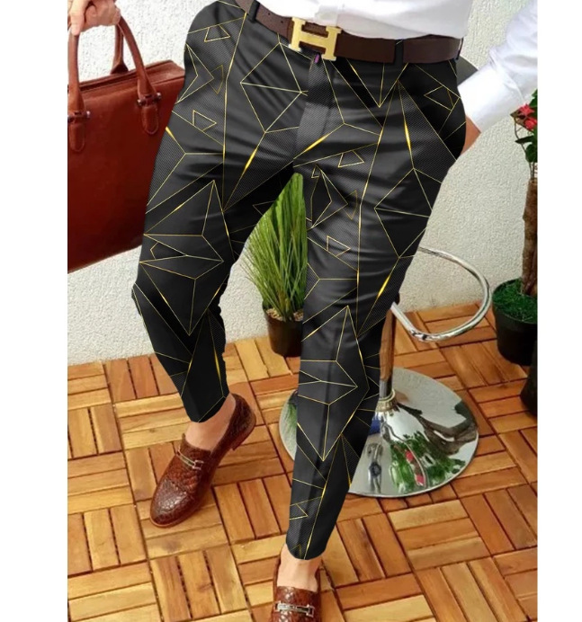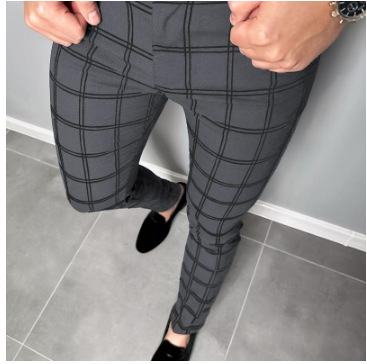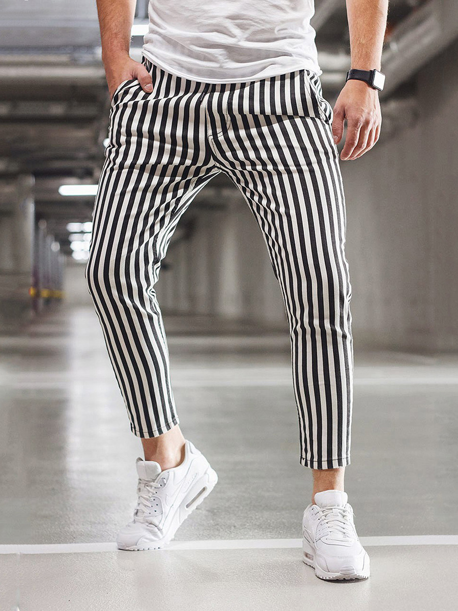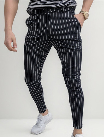 Главная страница > Европейские и американские трансграничные осенне-зимние новые мужские повседневные модные полосатые узкие модные длинные брюки со средней талией с принтом