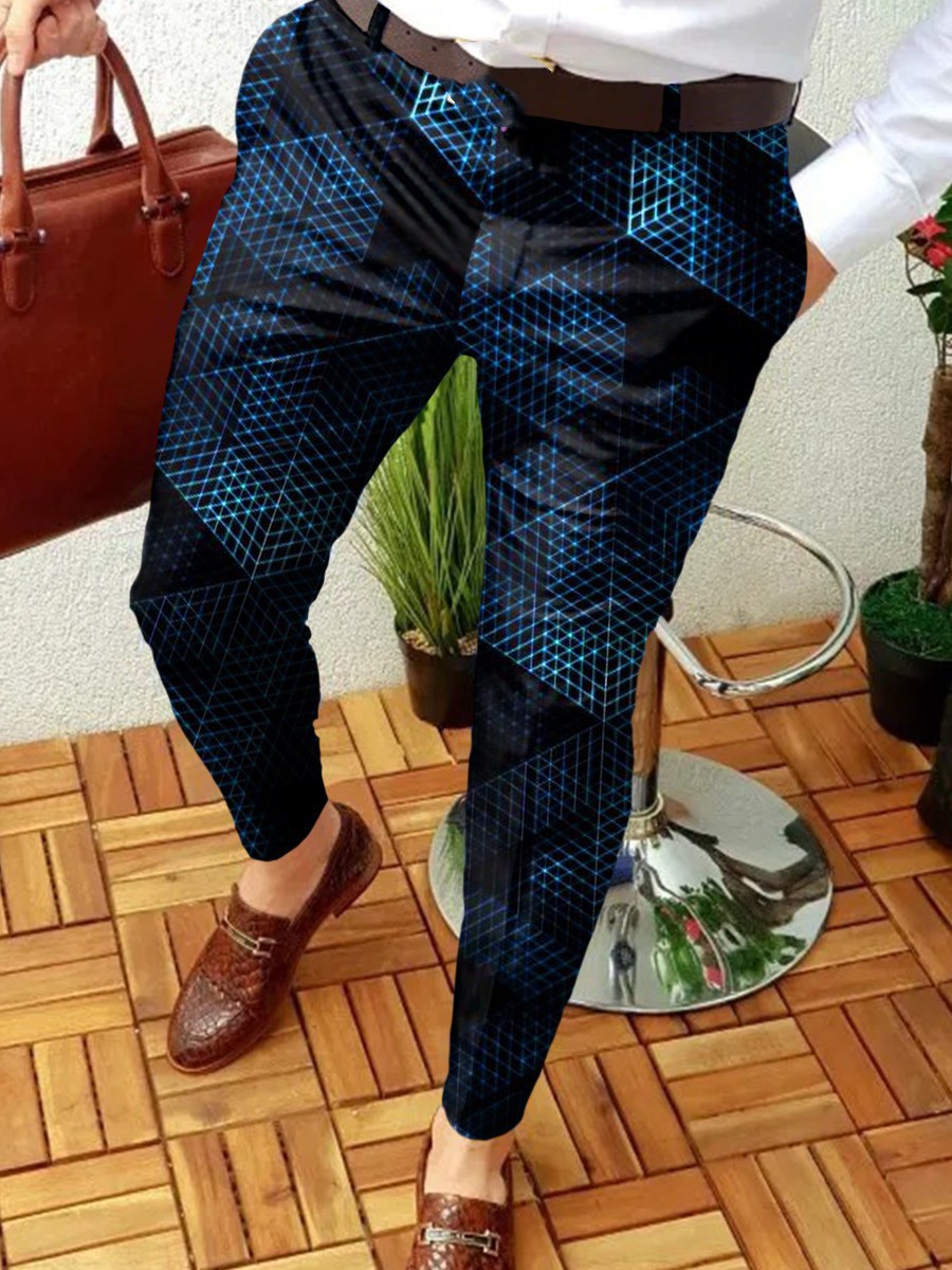 Европейские и американские трансграничные осенне-зимние новые мужские повседневные модные полосатые узкие модные длинные брюки со средней талией с принтом