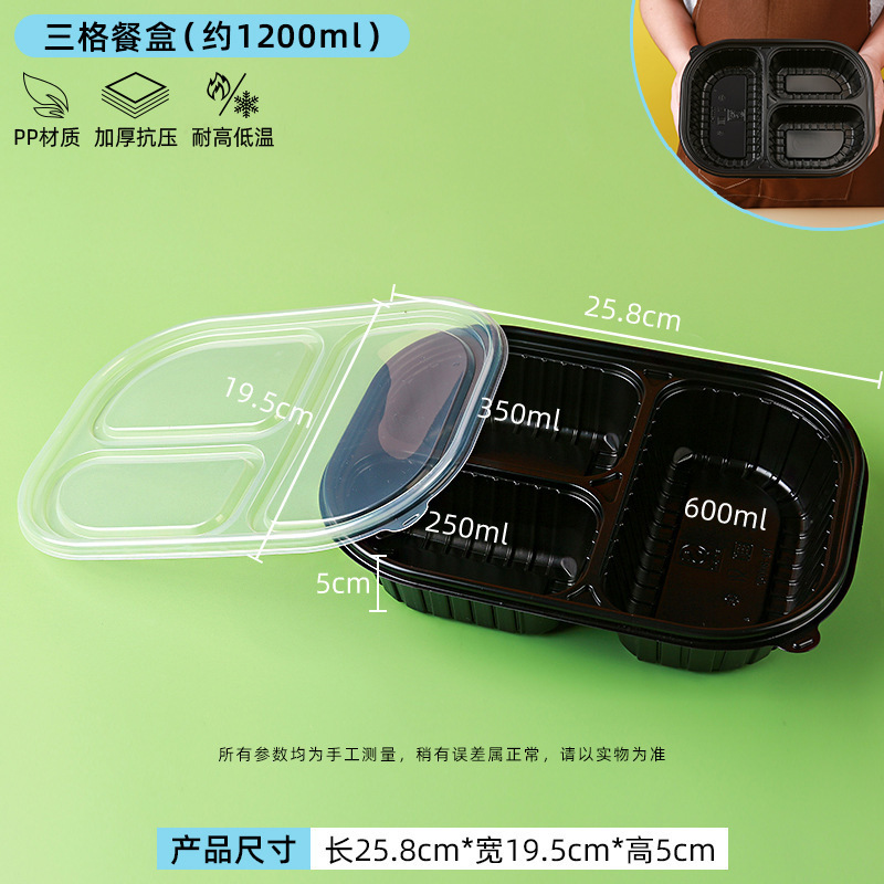 1200 мл, три отделения, черный, набор из 50 шт.