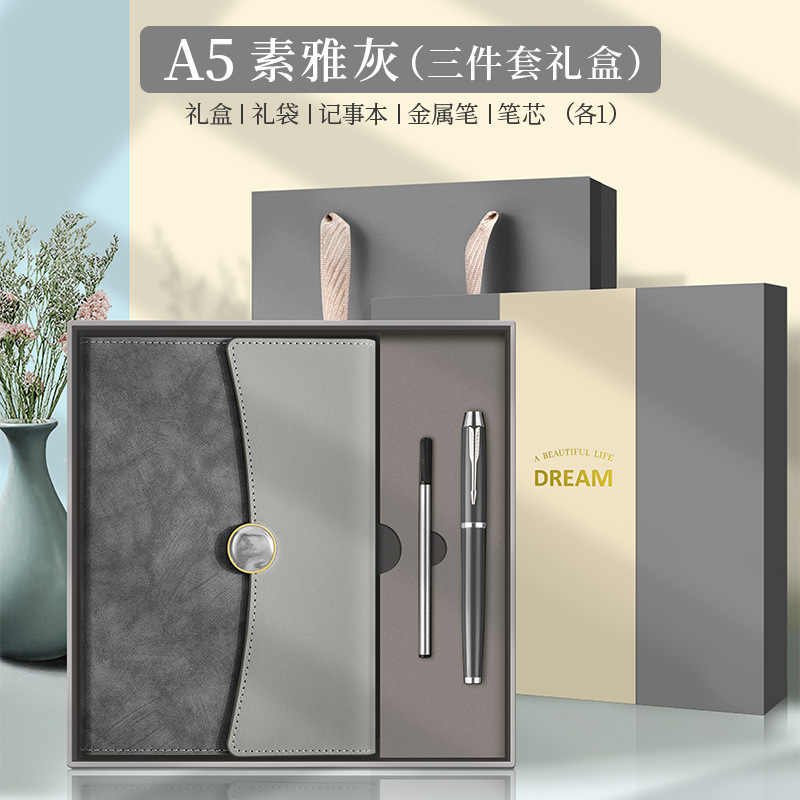 Элегантный серый набор из 3 предметов формата А5 (ручка для подписи + стержень)